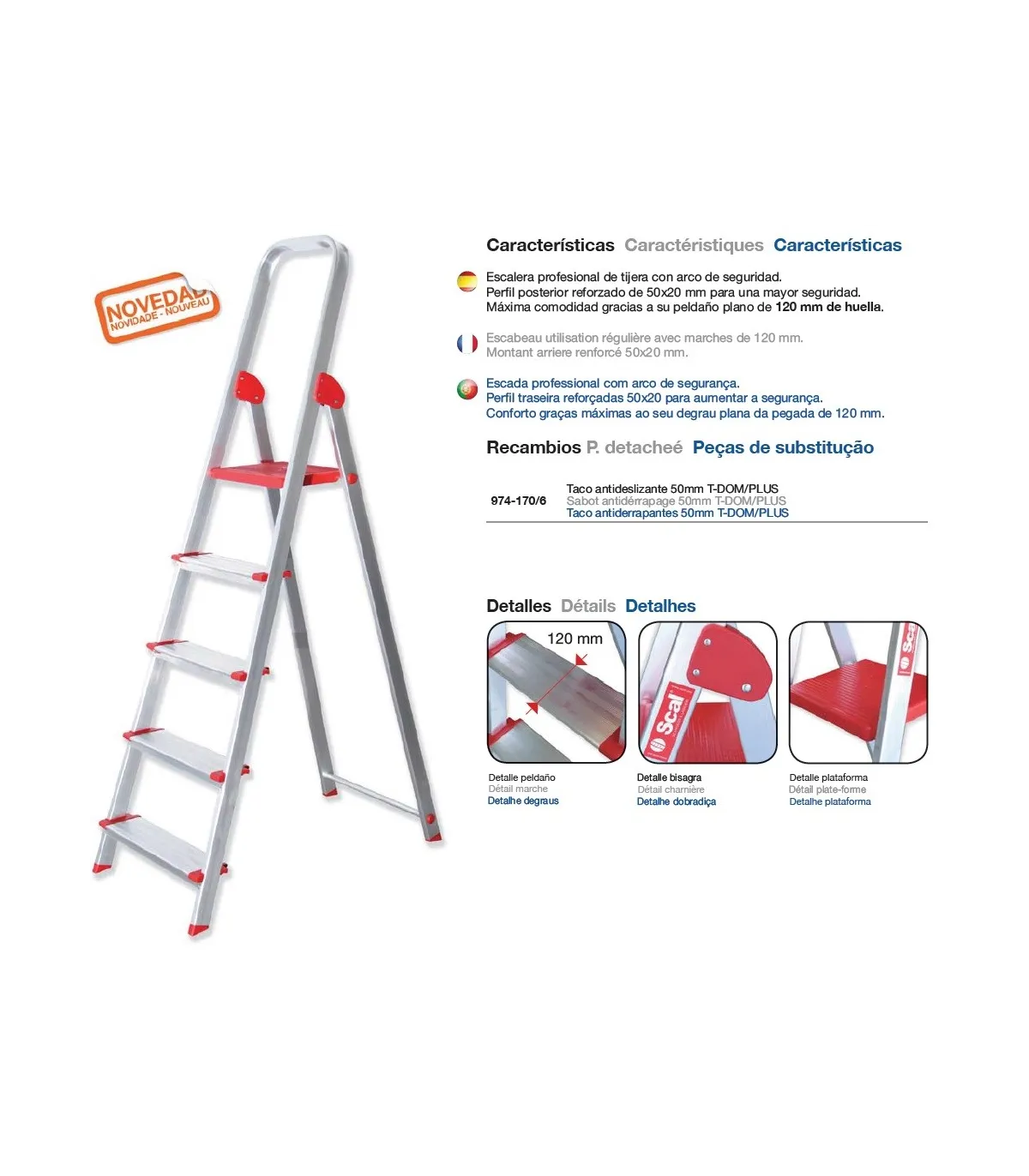 El modelo ELEGANCE está fabricado en aluminio, con montantes con perfiles estriados, peldaños de 13 cm.