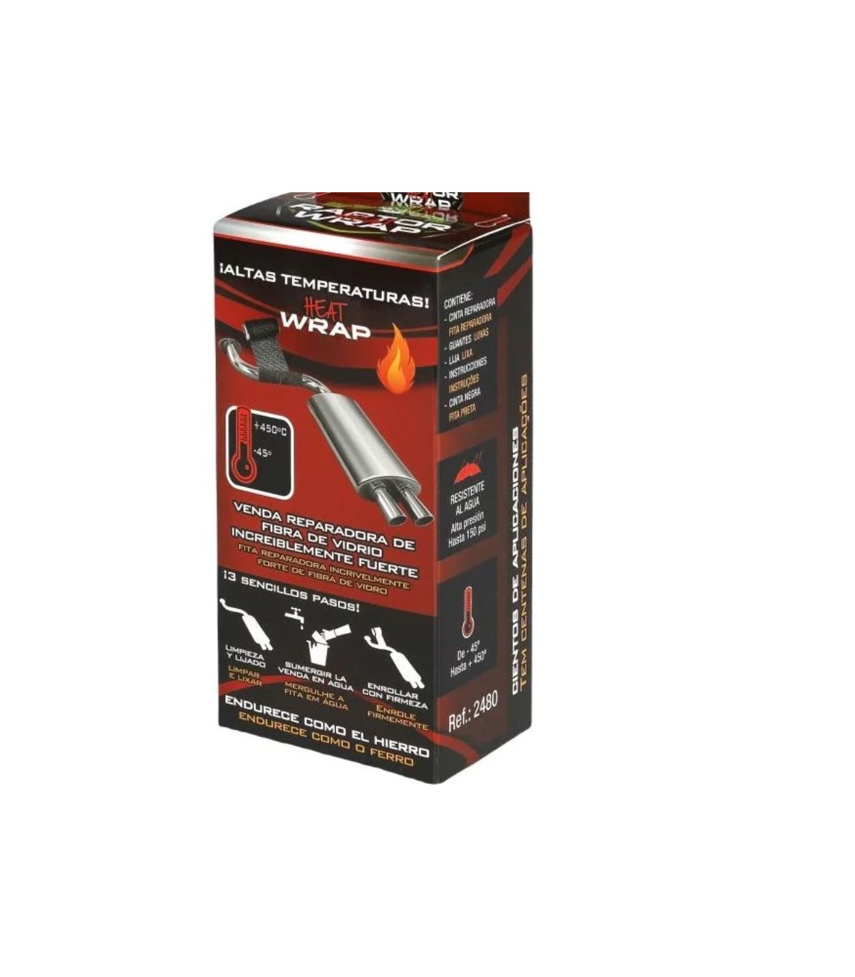 Rollo de cinta de reparación para tubos de chimeneas, escapes y silenciosos, para latas temperaturas hasta +450ºC.