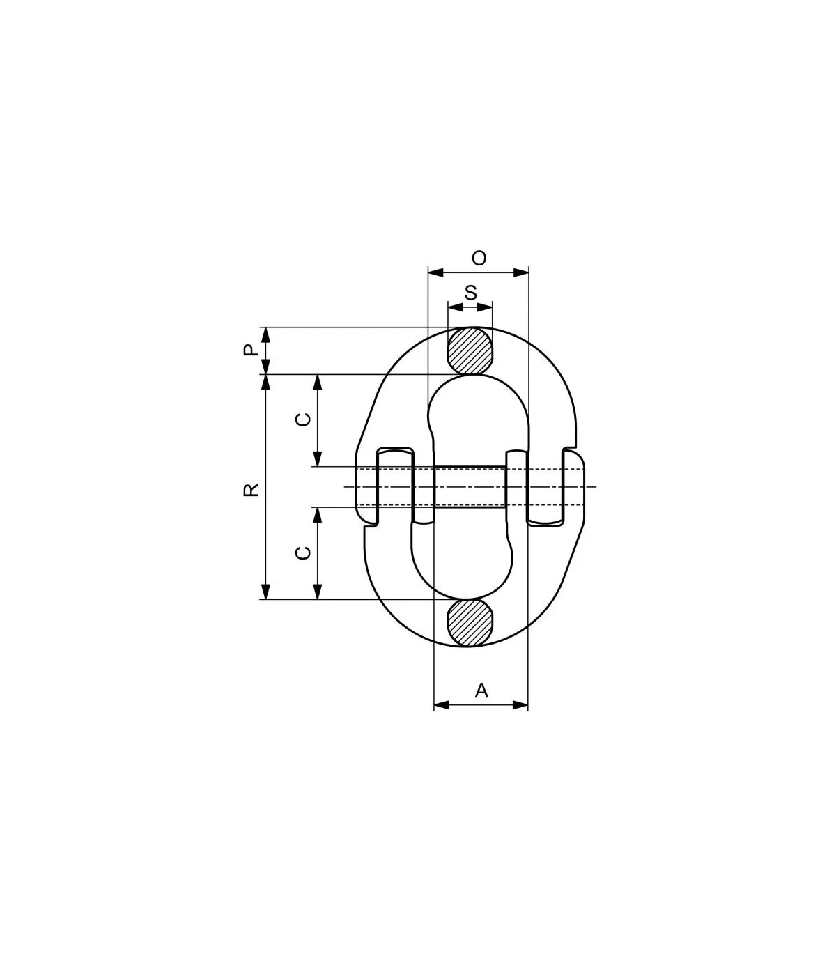 Malla de conexión, conector de unión, acoplamiento para unir cadenas de alta resistencia grado 80 G80.