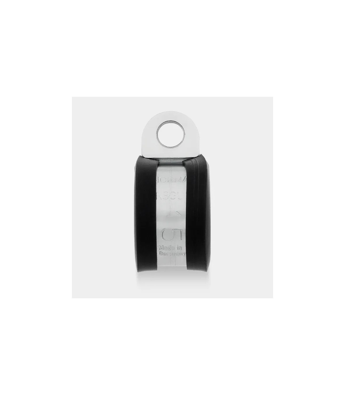 Abrazadera para sujetar tubos, cables y mangueras. El perfil de goma amortigua las vibraciones, protege la unión de filtraciones y aísla