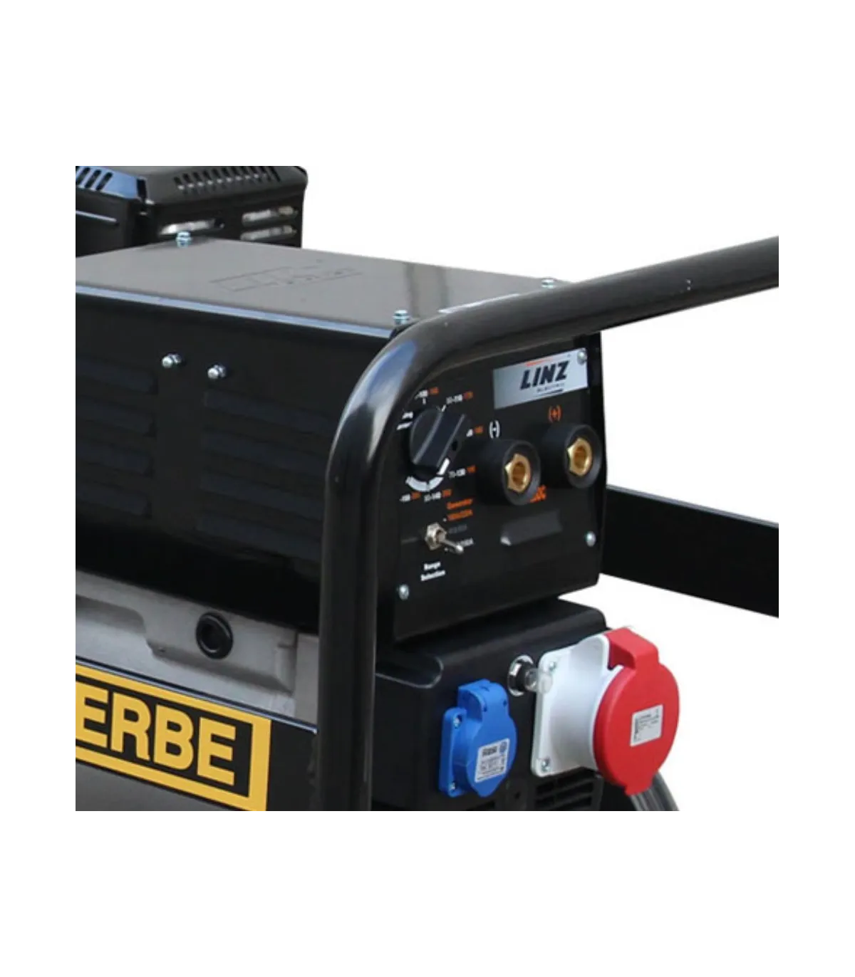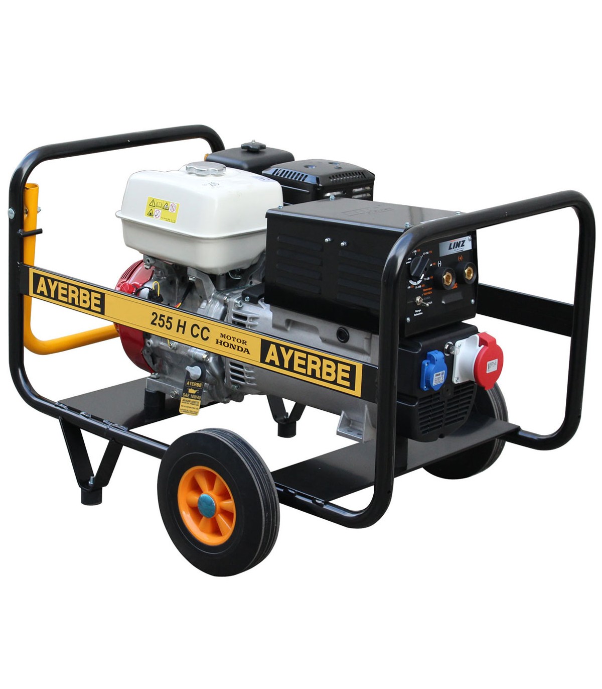 Motosoldadora con ruedas, motor gasolina HONDA GX390 de 13CV y alternador LINZ E2W10 220DC.