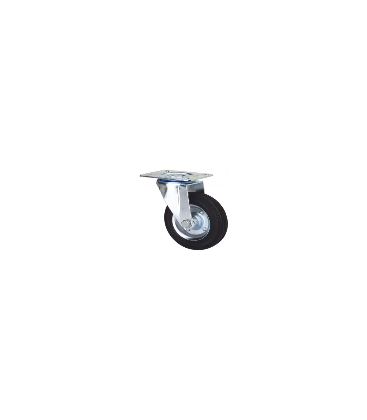 Ruedas de núcleo de metálico con banda de goma negra. Especialmente indicada para soportar cargas hasta 250 Kg.
