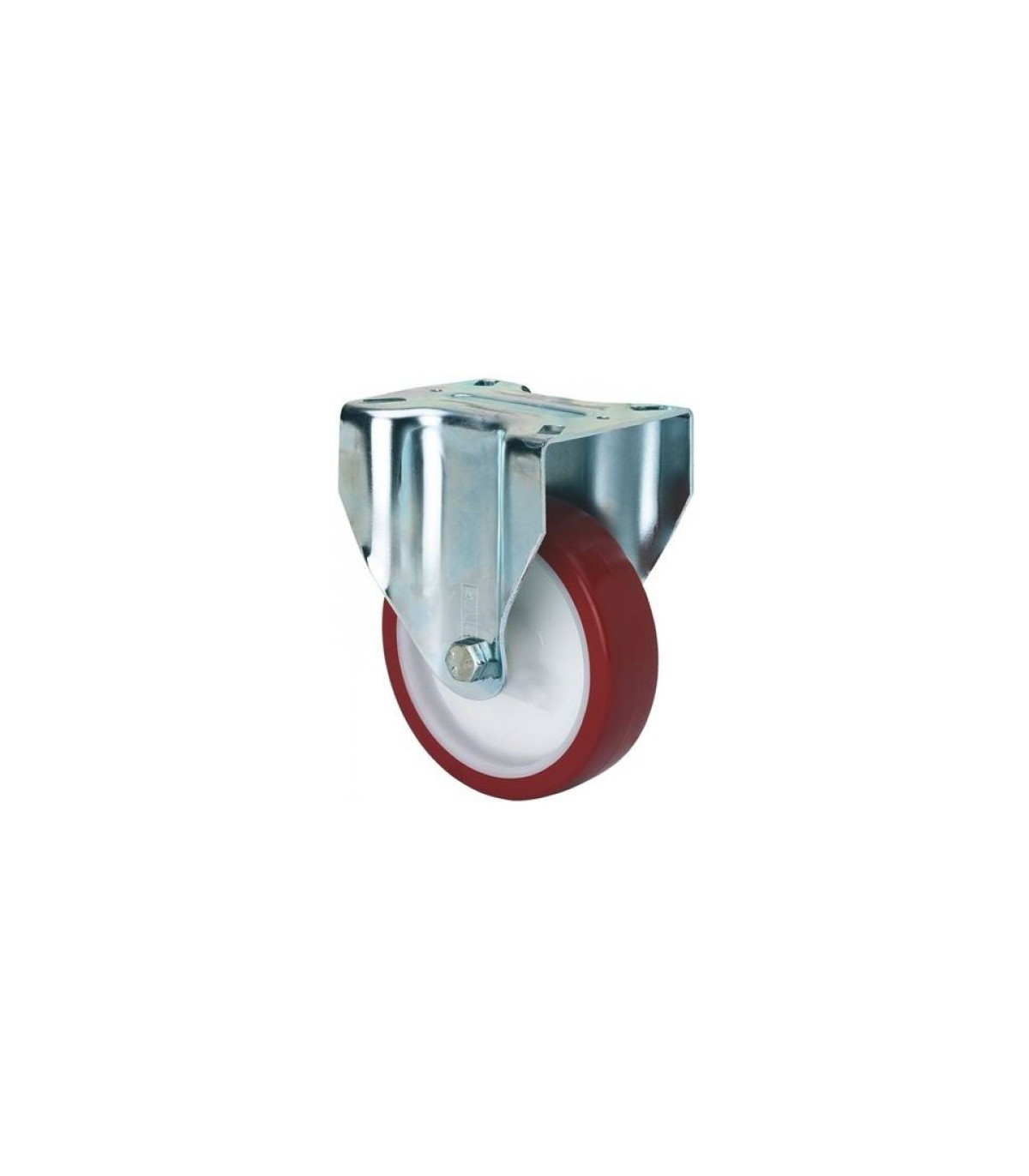 Ruedas con núcleo de poliamix blanco y banda de poliuretano marrón inyectado de dureza 95º shore A. Especialmente indicada para soportar cargas hasta 300 Kg.