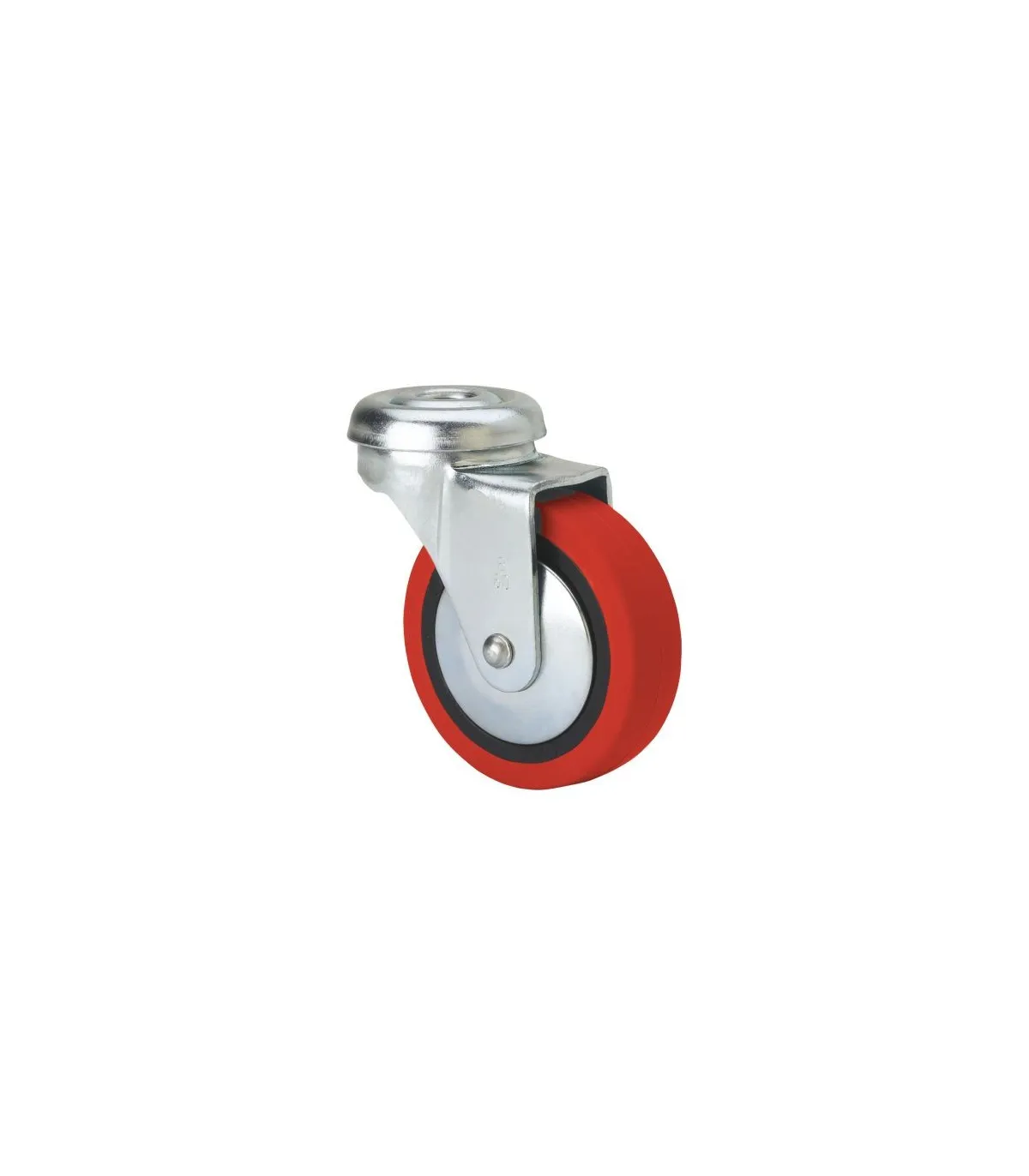 Ruedas rojas de poliuretano inyectado blando especialmente indicado para soportar cargas hasta 40 Kg.