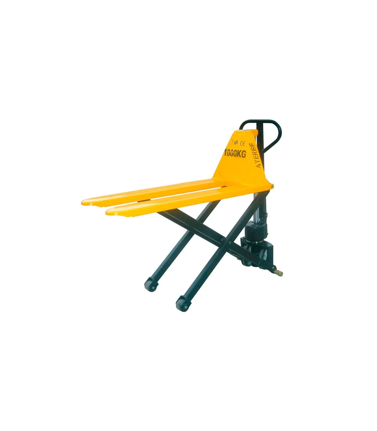 Este modelo se caracteriza por ser muy práctico, su funcionamiento es idéntico al de una transpaleta convencional, la única diferencia es que una vez recogida la carga, con unos pocos movimientos de la barra de tiro las horquillas de 1090 mm, puedee elevarse a 800 mm de altura gracias a su sistema de tijeras. Por ende, se puede utilizar como mesa o estación de trabajo.