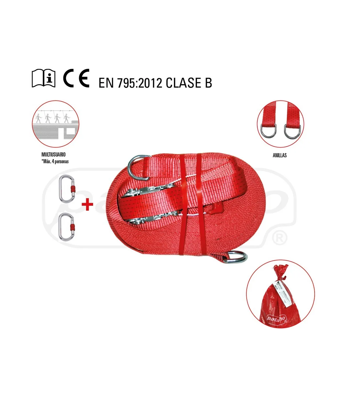 La linea de vida es una  cinta de 50mm de ancha en poliéster de alta resitencia, apta parta hasta 4 usuarios.