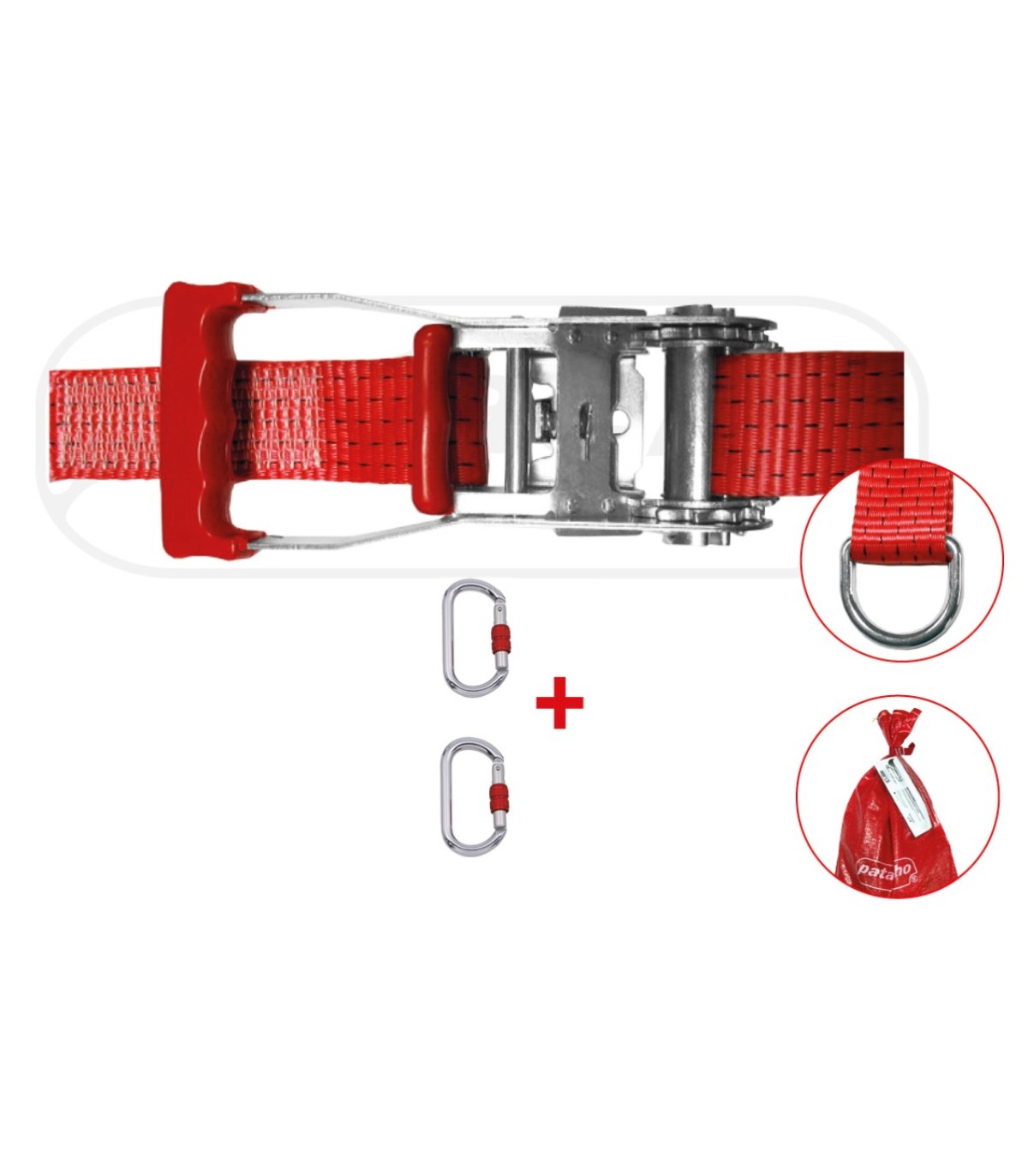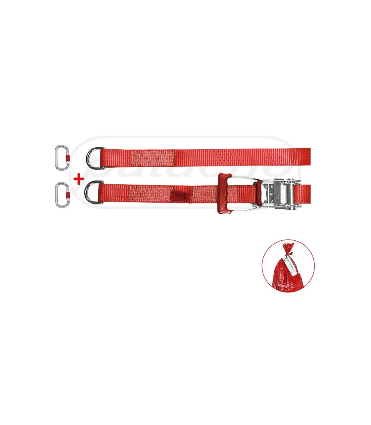 Dotación:  Rollo cinta 30m, Tensor carraca, 2 mosquetón, bolsa transporte.