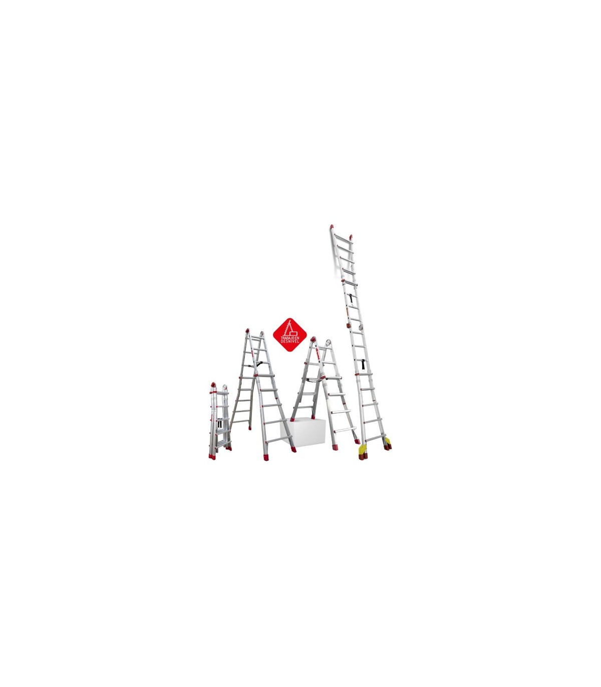Dispone de una barandilla opcional para poder utilizar los dos últimos peldaños en posición de tijera.