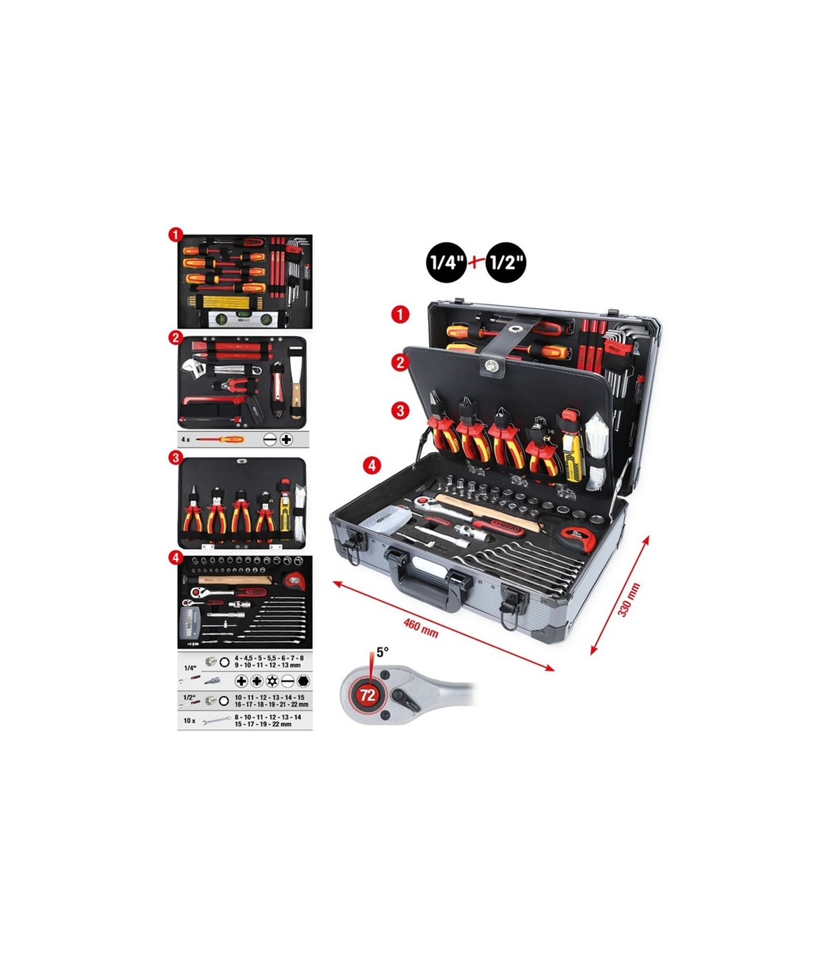 CAJA 128 HERRAMIENTAS ELECTROMECANICO KS TOOLS 911.0628
