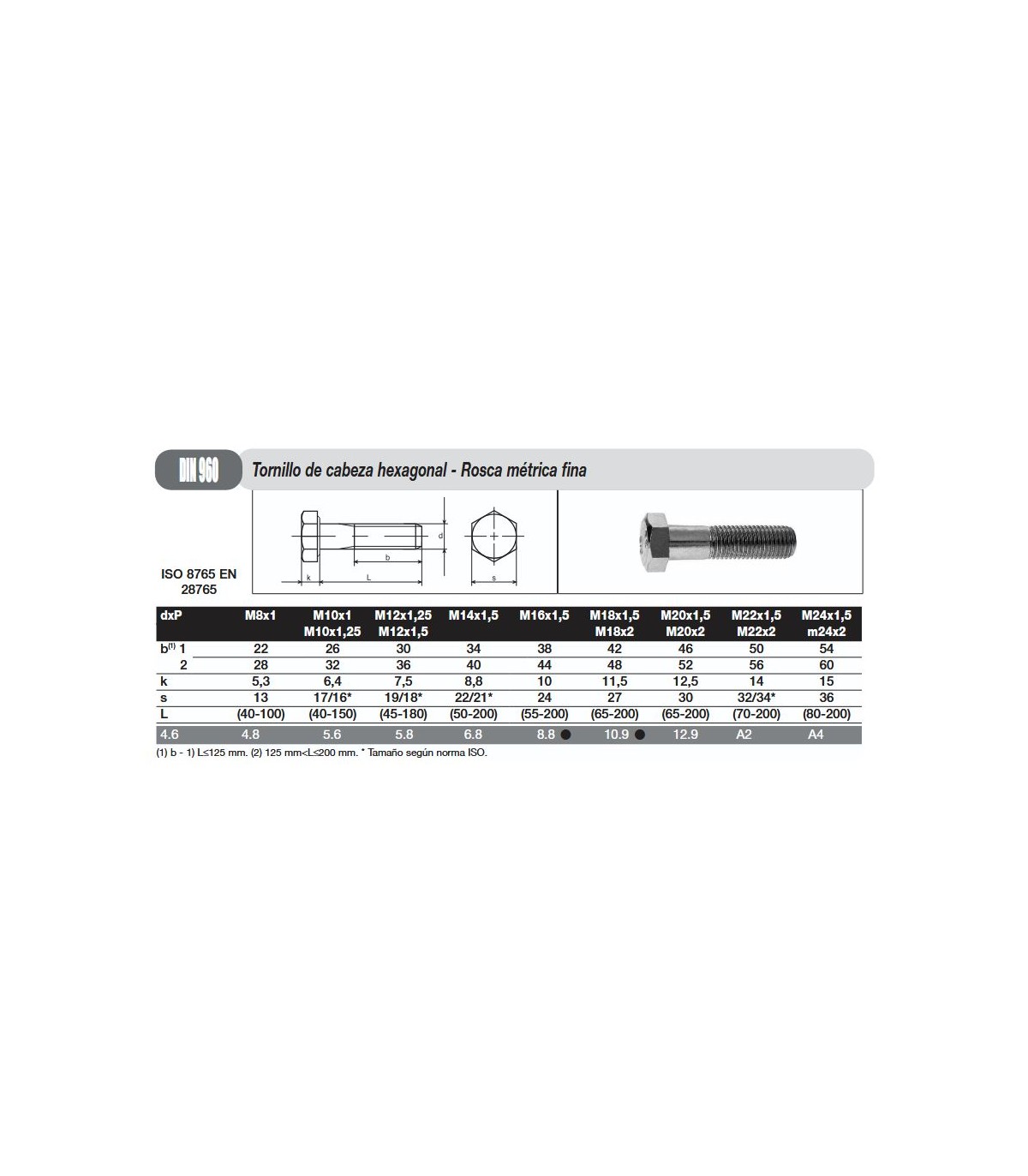 TORNILLO DIN 931 8.8 METRICA FINA NEGRO