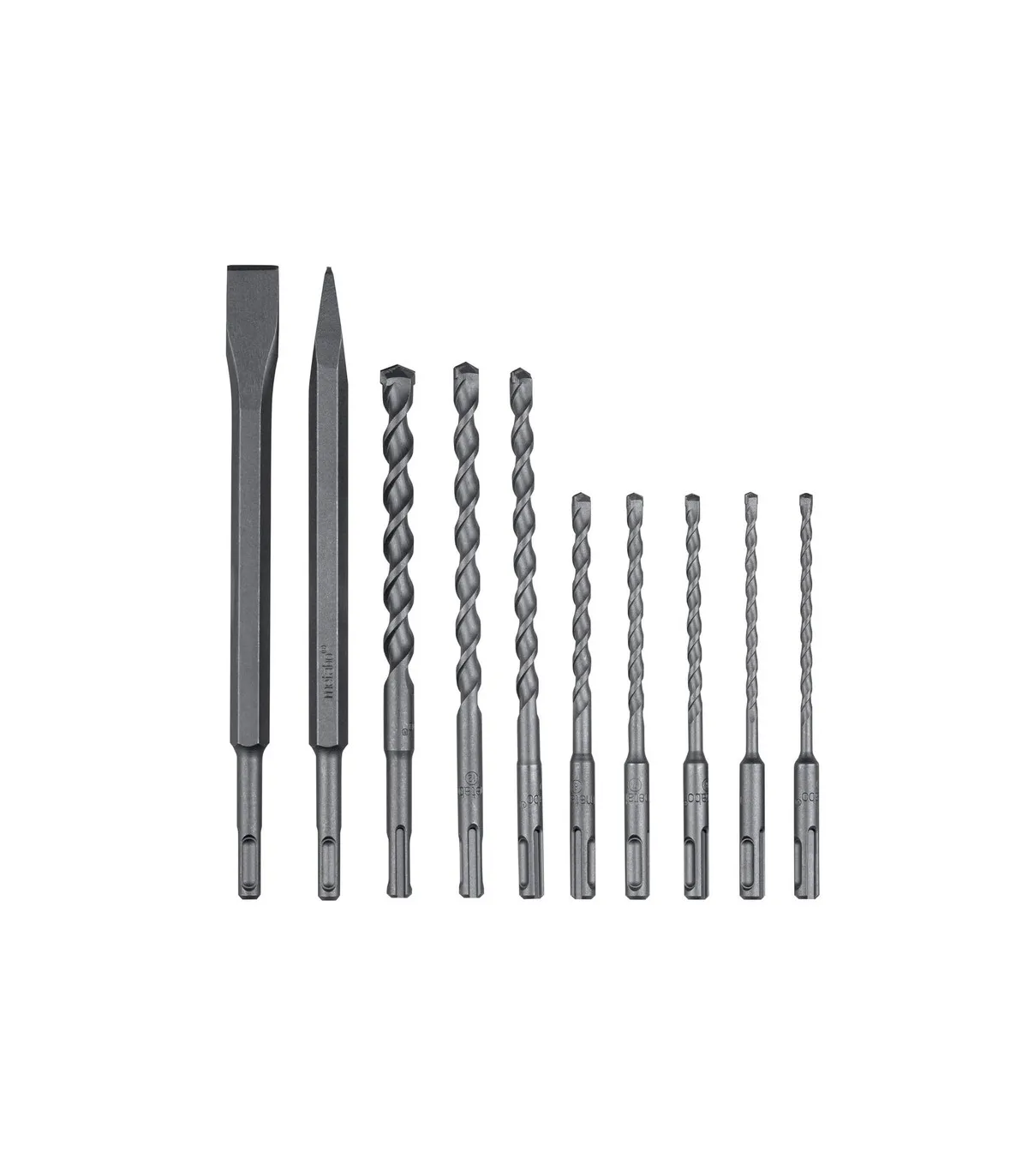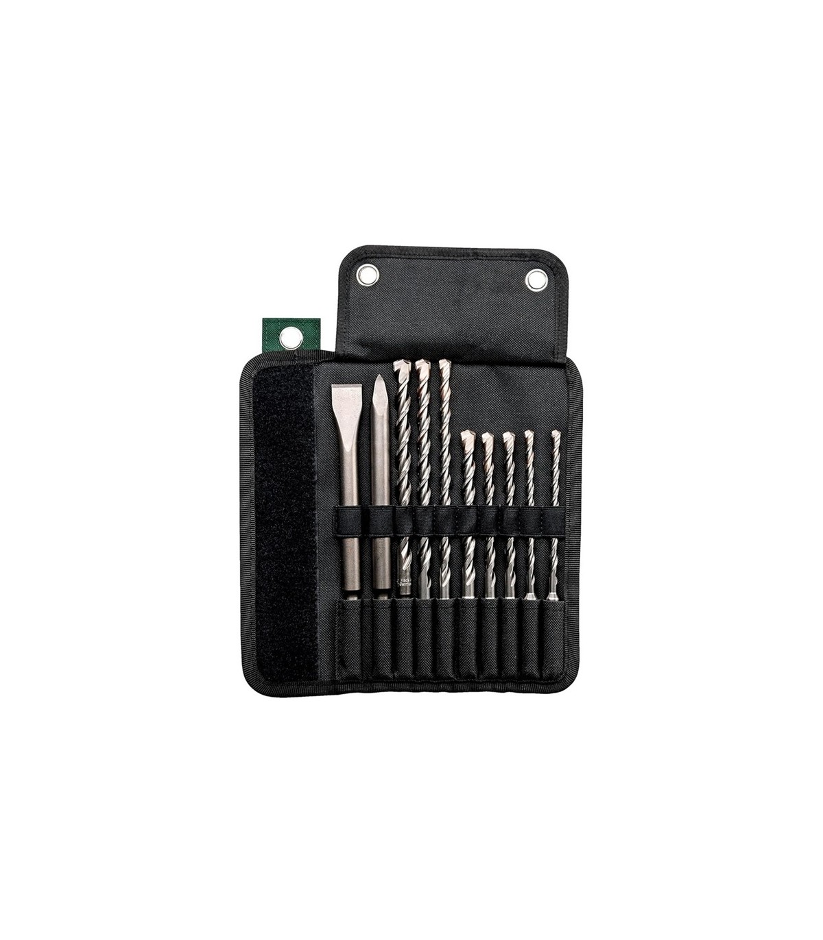 Juego con 8 brocas y 2 cinceles SDS-Plus en bolsa textil enrollable