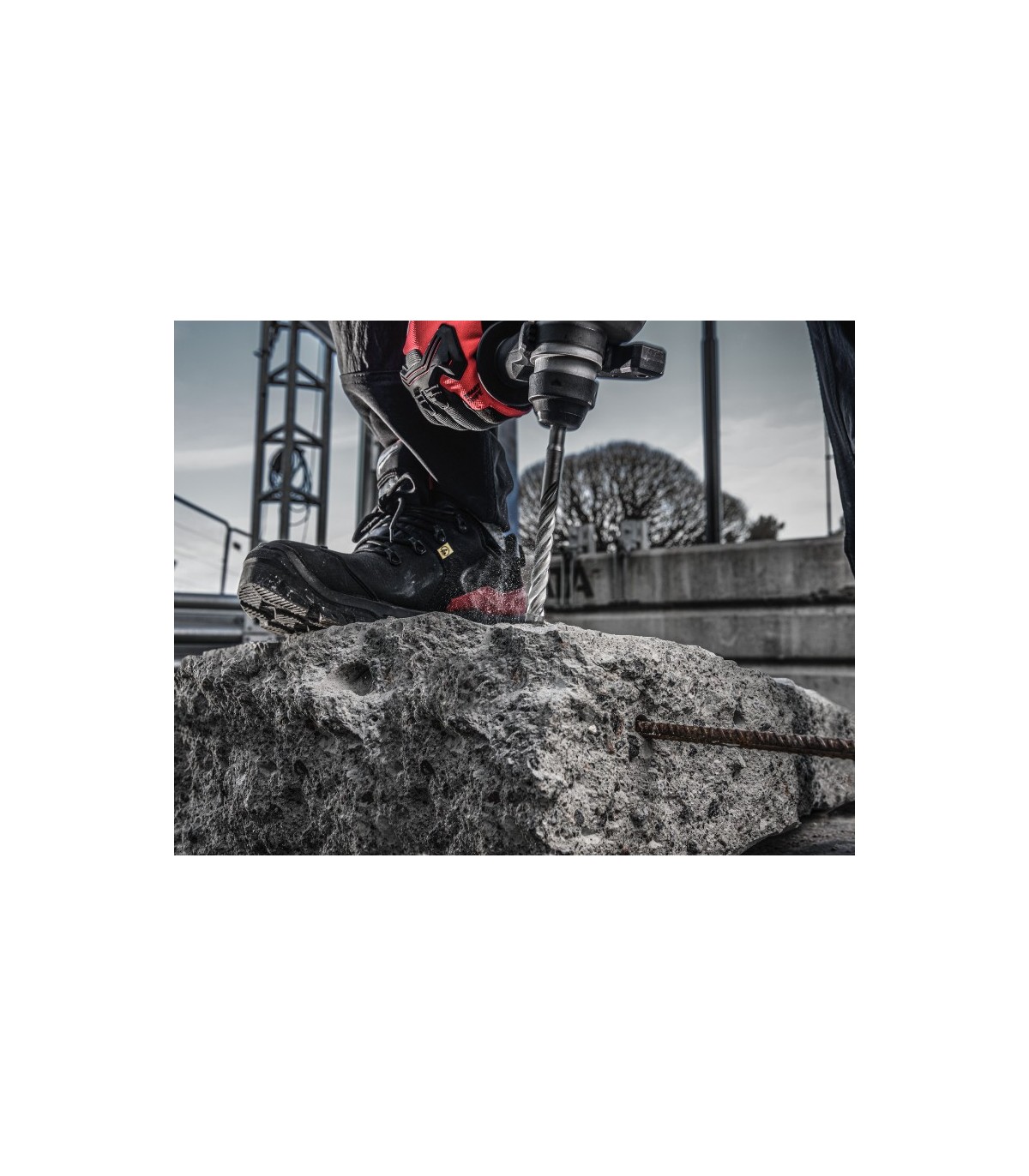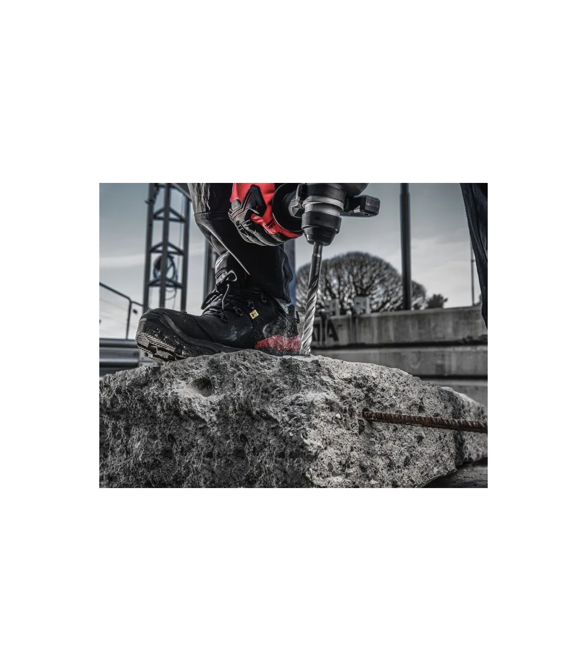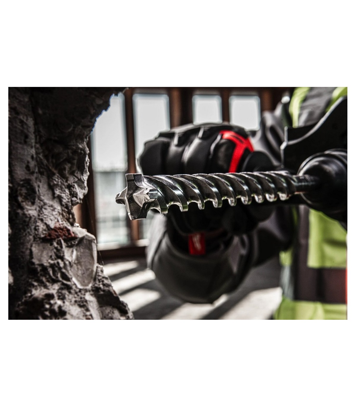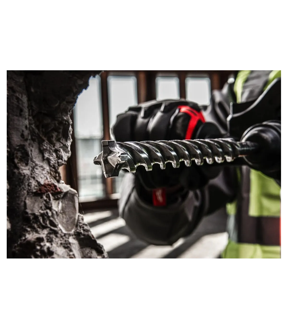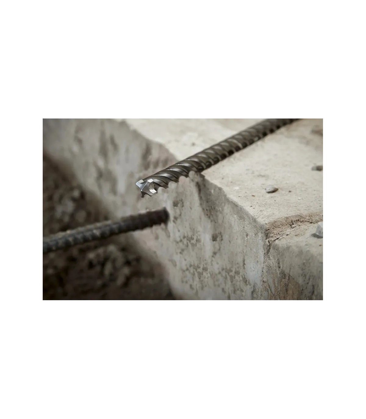 Punta de carburo de 4 cortes: geometría de punta mejorada, protectores de varillas de refuerzo y nuevas ranuras para el polvo que proporcionan arranques limpios, agujeros precisos y máxima duración al perforar en hormigón armado.