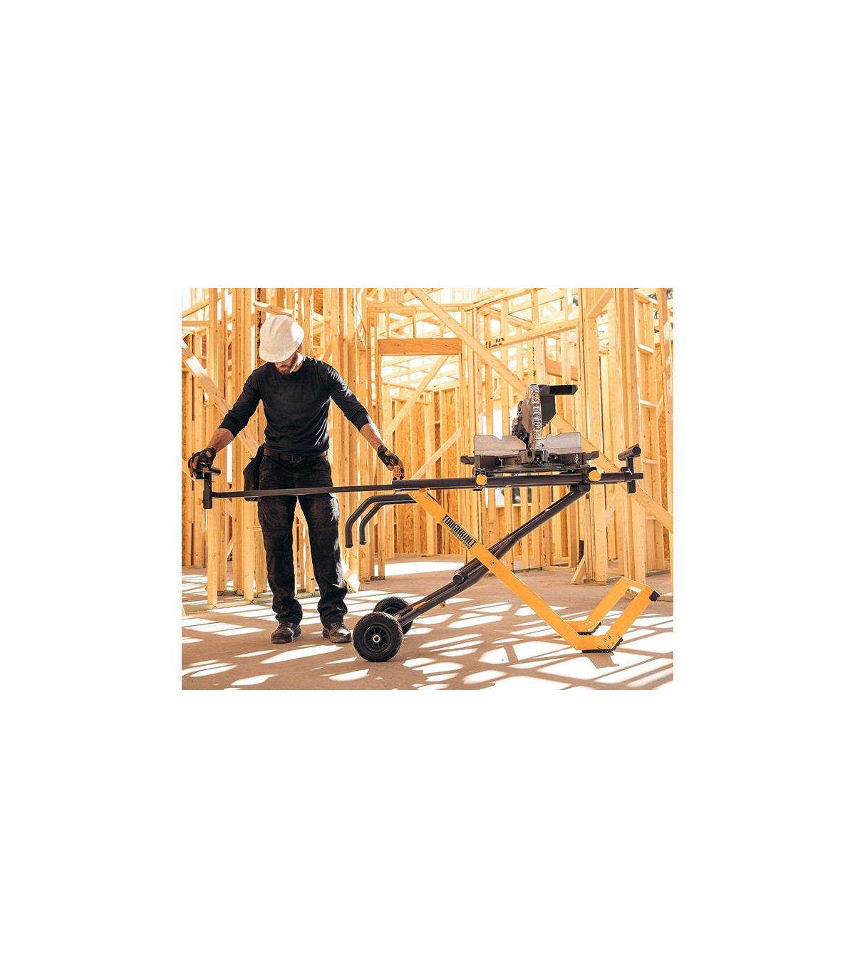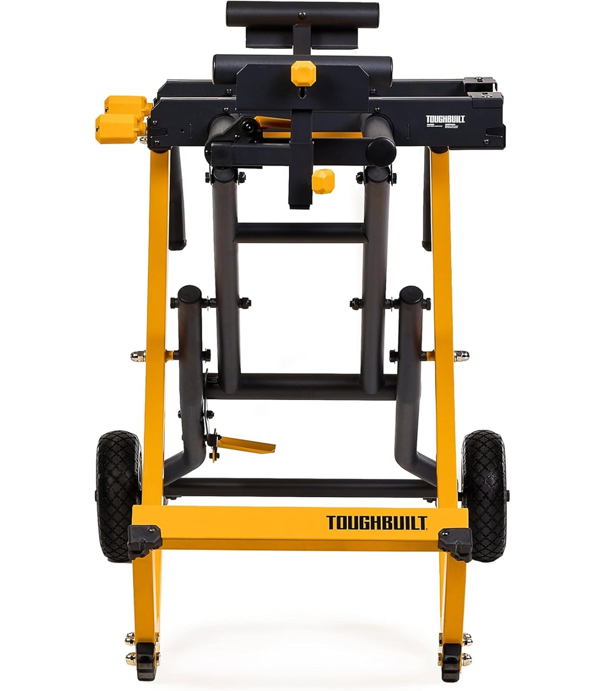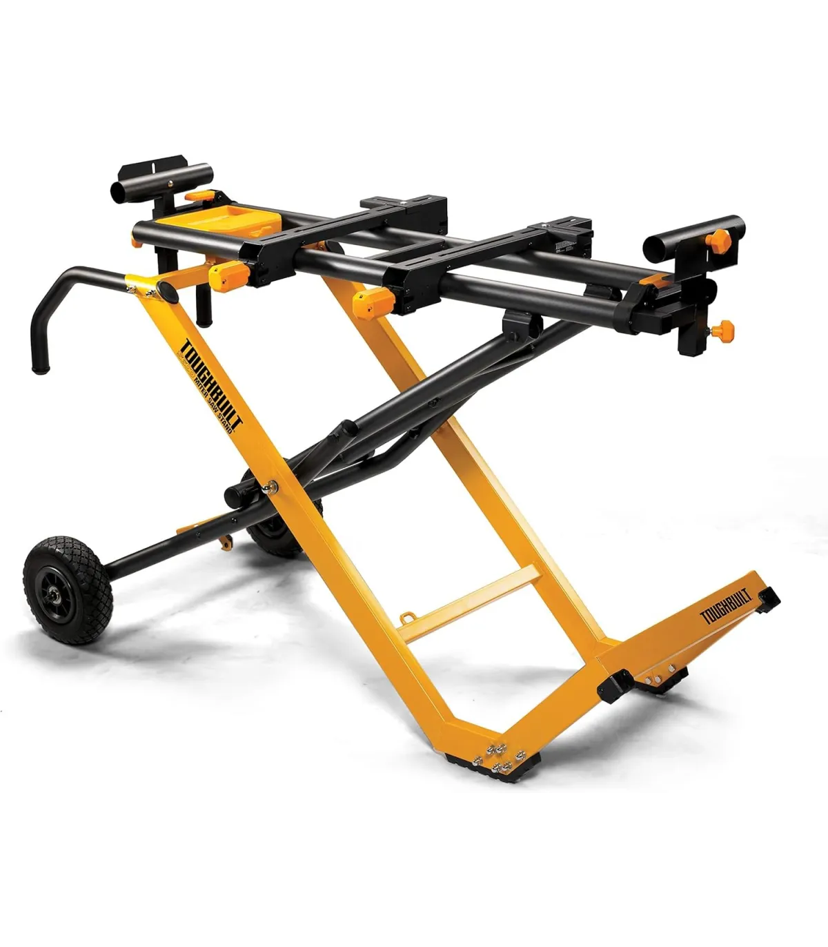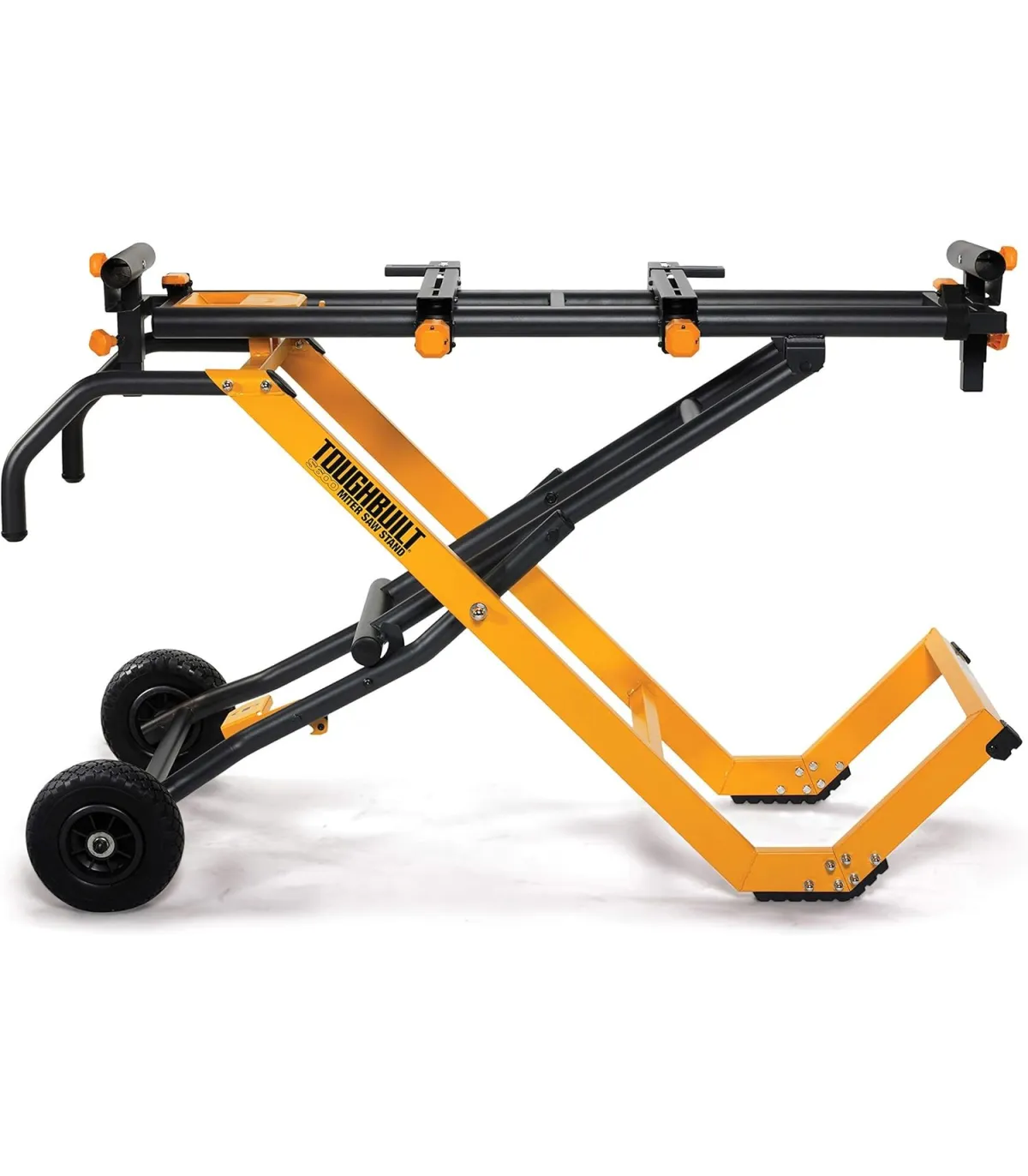 Soporte universal ToughBuilt QuickSet para ingletadora, plegable y robusto. Extensible hasta 3 m, ruedas sólidas todoterreno y estructura reforzada.