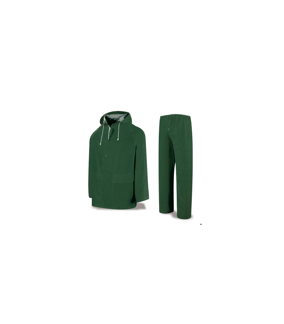 Traje de Agua de PVC de 0,32mm de grosor, compuesto por chaqueta con capucha y pantalón. Costuras termoselladas