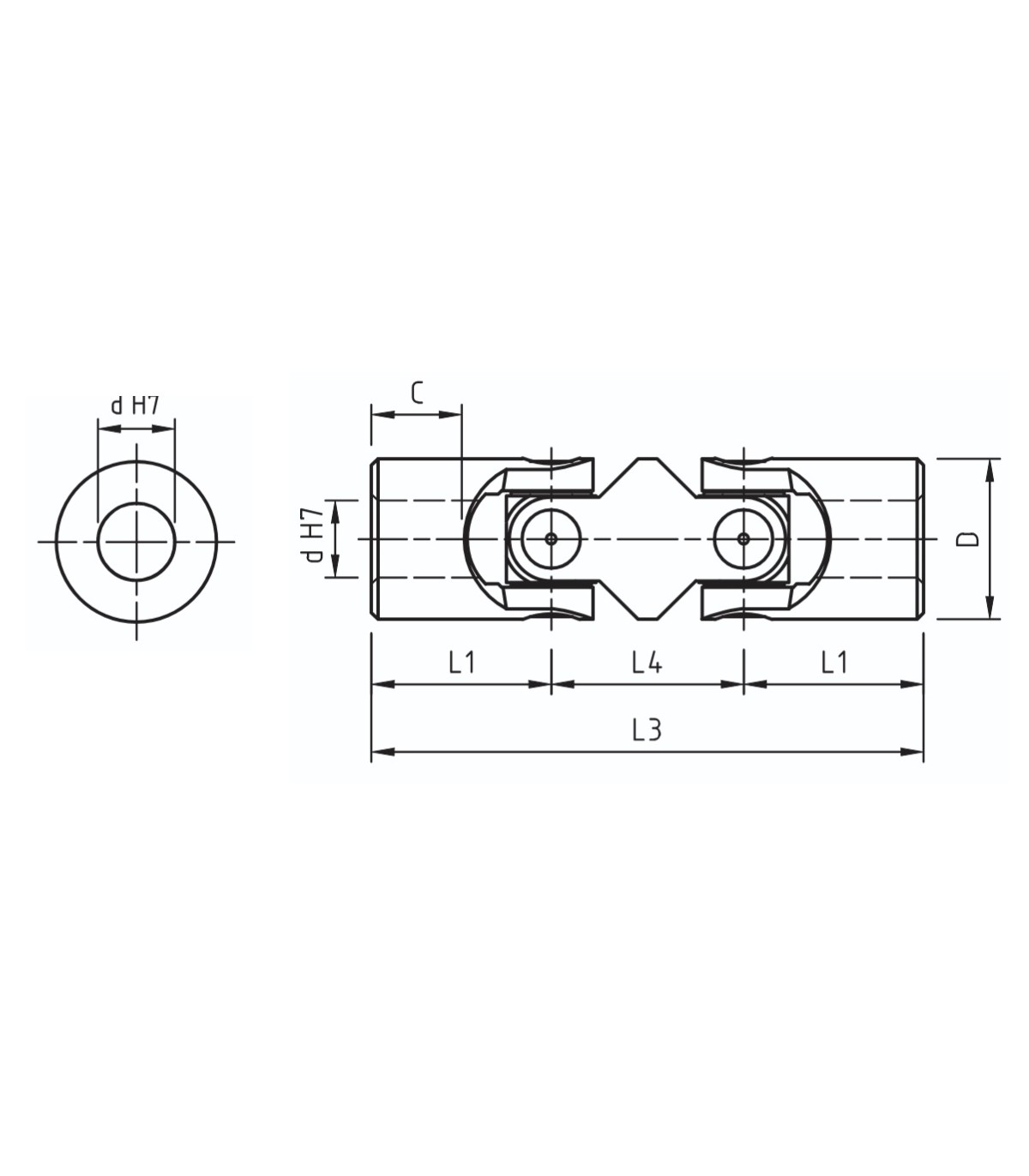 Rótula precisión o articulación doble para ejes, en acero, robusta, para múltiples