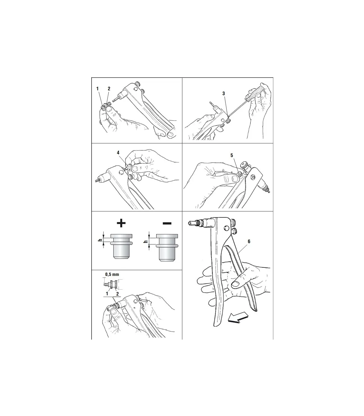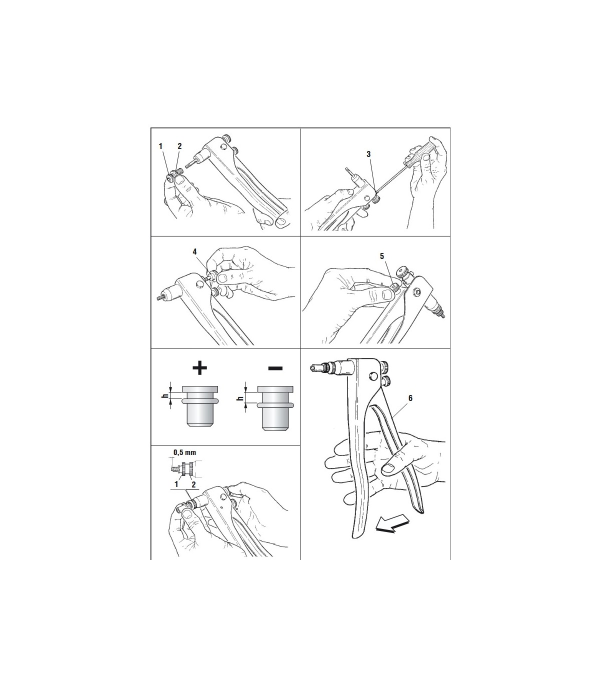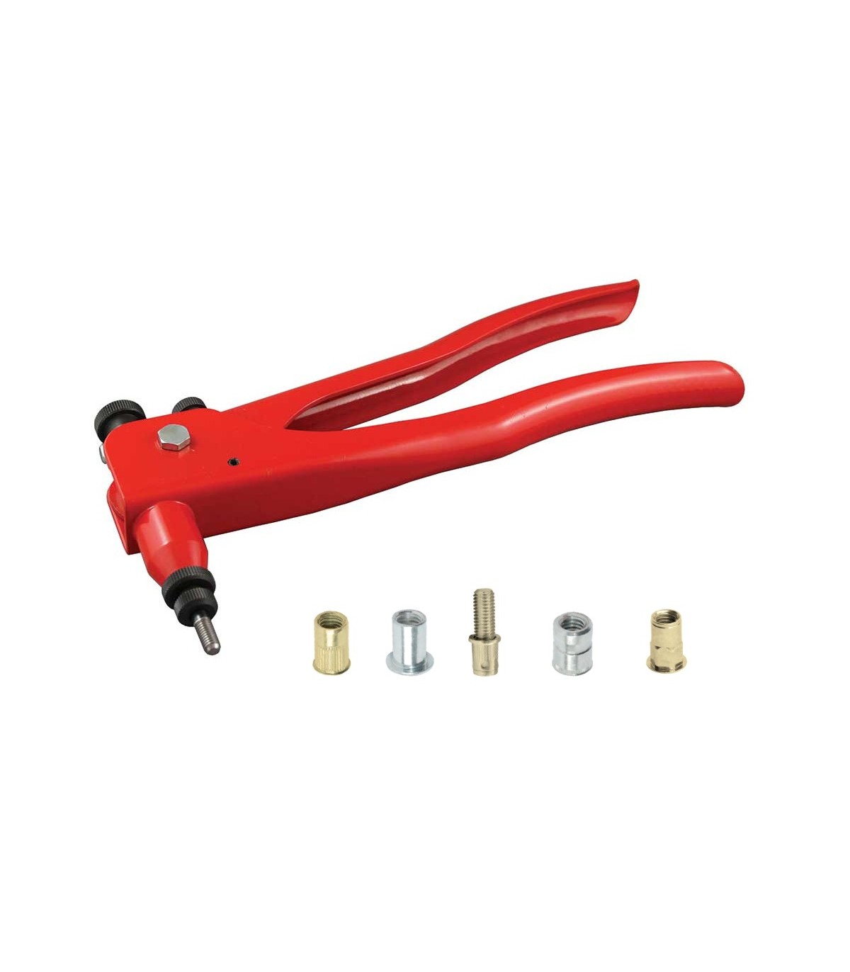 Tenaza para remachar tuercas remachables de M3, M4, M5 y M6 en aceros.