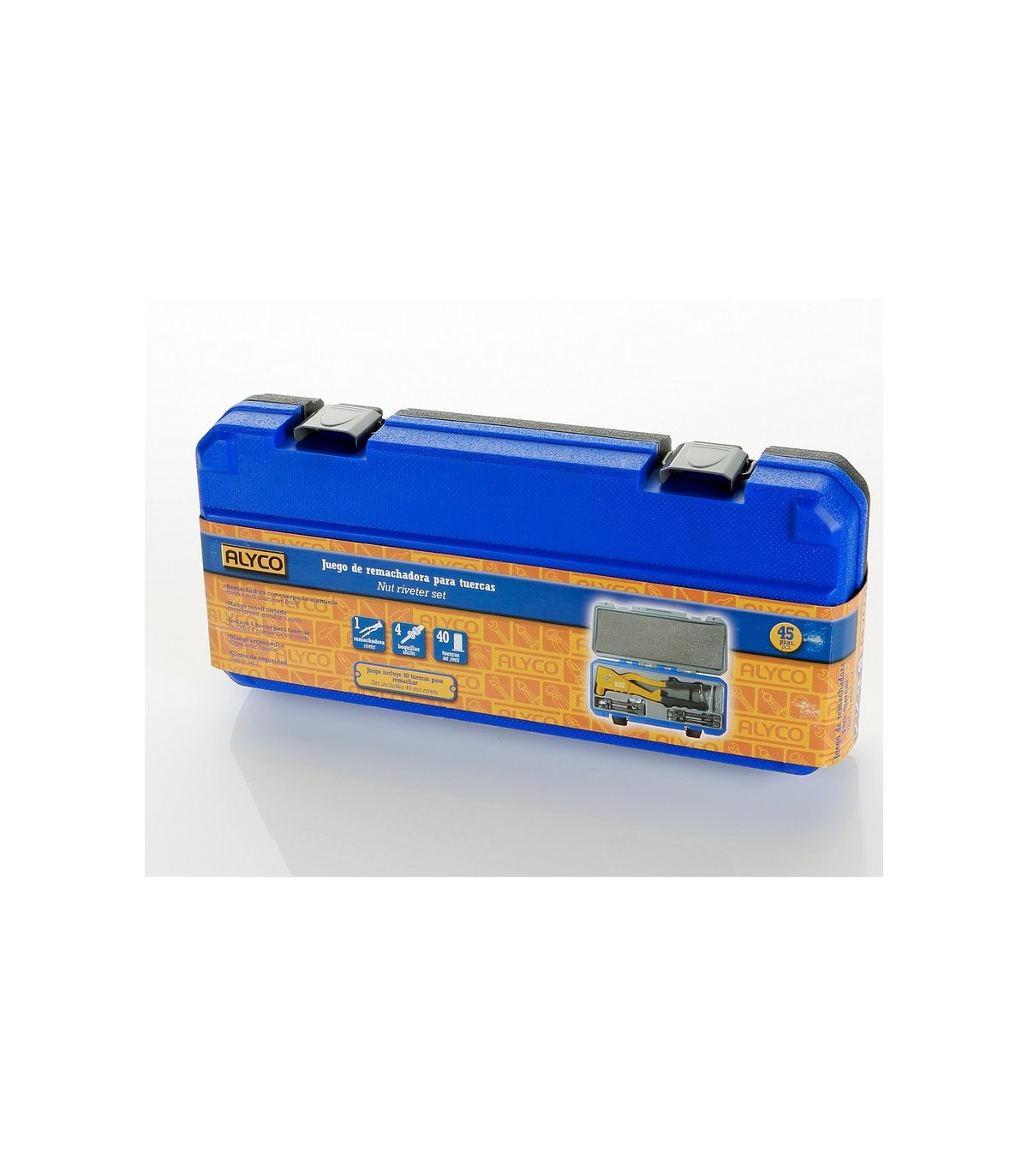 Juego de remachadora para tuercas, con 4 bocas diferentes (M3, M4, M5 y M6) y 40 tuercas (10 - M3 / 10 - M4 / 10 - M5 / 10 - M6). Se puede utilizar con remaches inoxidables. Incluye un estuche rígido que facilita el transporte de la herramienta y el resto de los componentes.