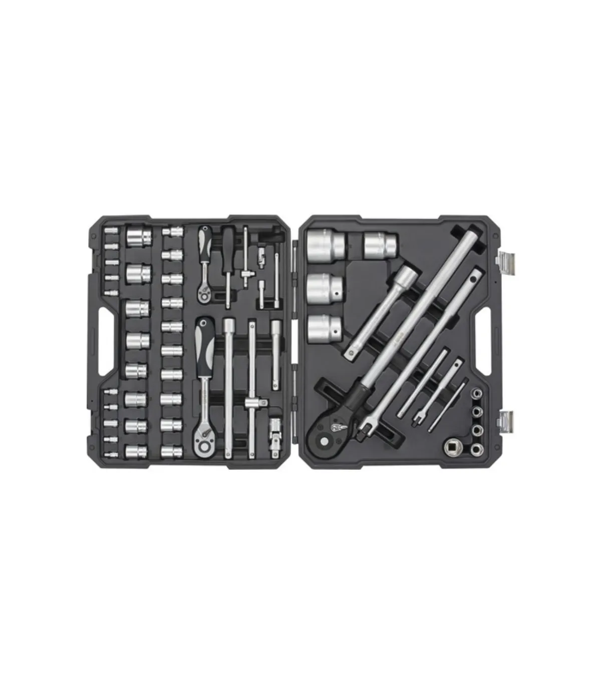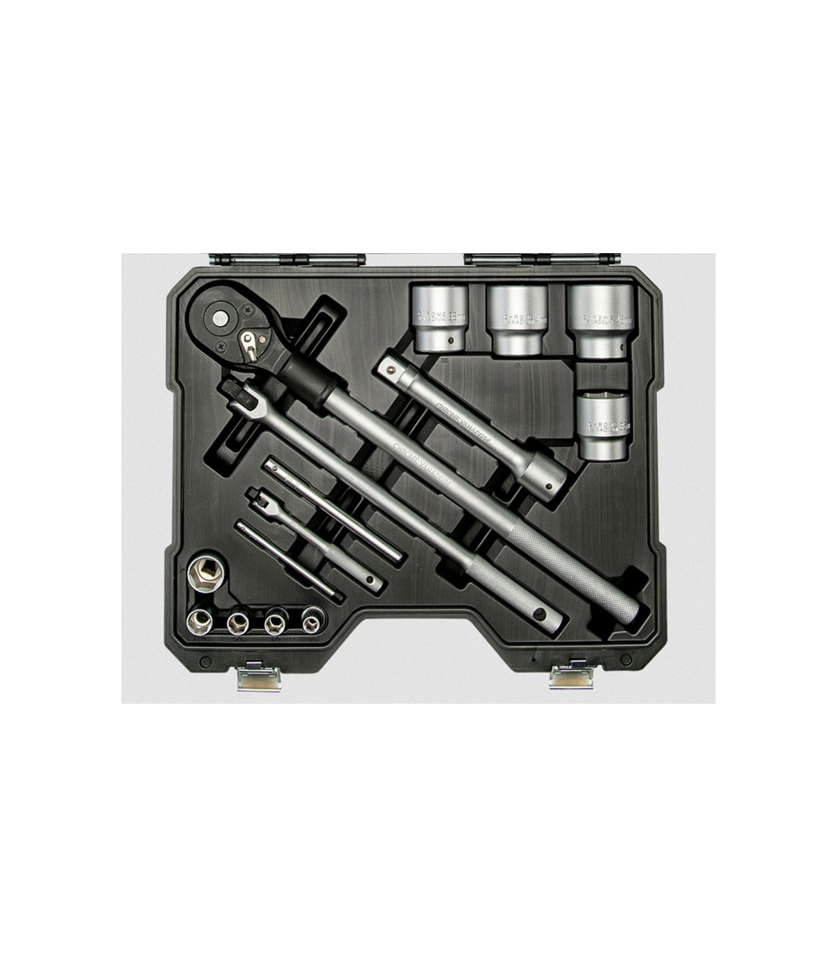 Juego de vasos industrial de 4 a 46mm, con carracas y accesorios de 1/4", 1/2" y 3/4".