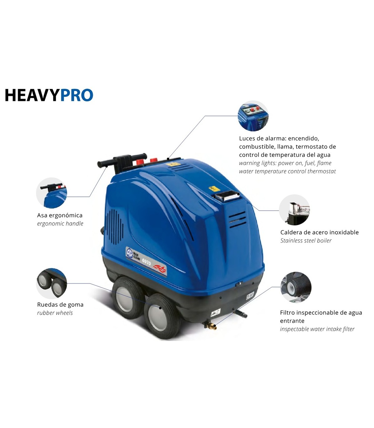 Hidrolimpiadora alta presión de agua fría y caliente.