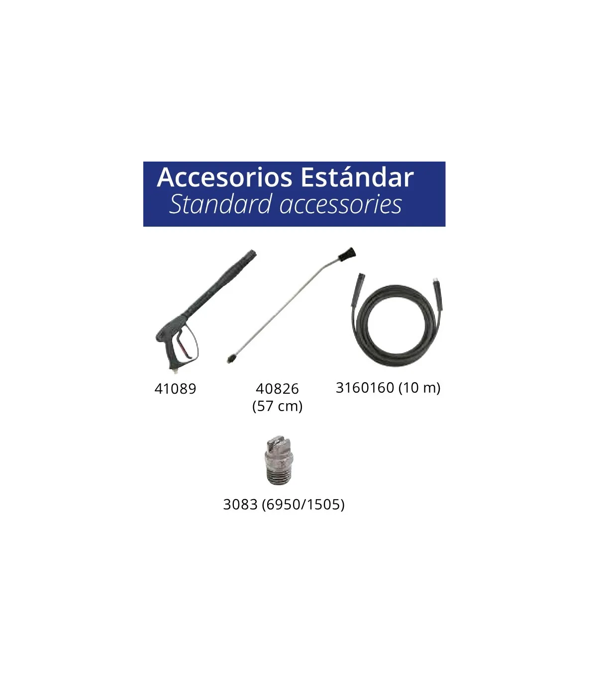 Con manguera reforzada de alta presión de 10 mts.