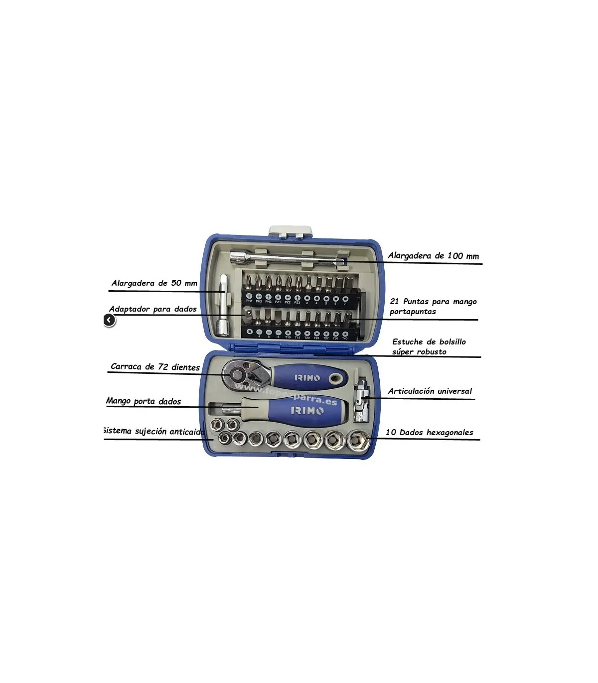 JUEGO VASOS Y PUNTAS 1/4" IRIMO 37 PIEZAS (DE BOLSILLO)