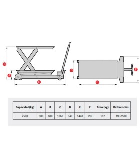Elevador de horquilla hidáulico-manual de 1.000 kilos y altura hasta 1.600mm