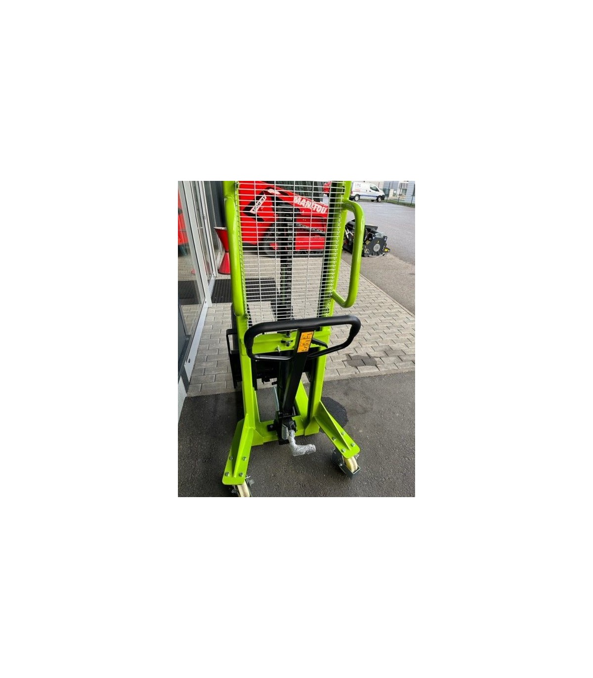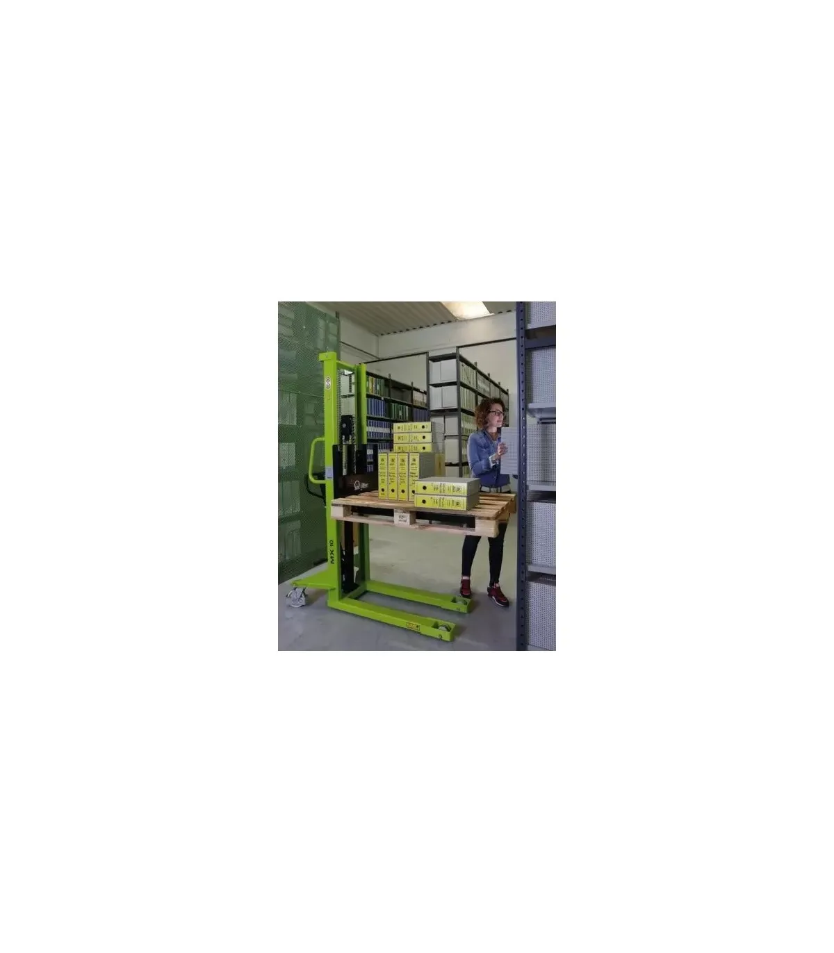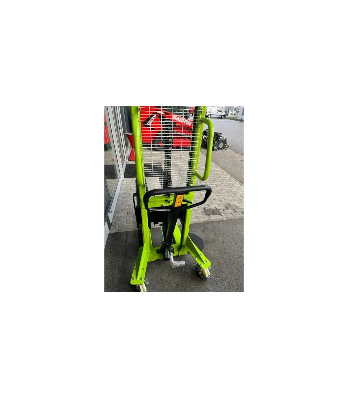 Apilador manual para carga y descarga de mercancía en vehículos industriales.