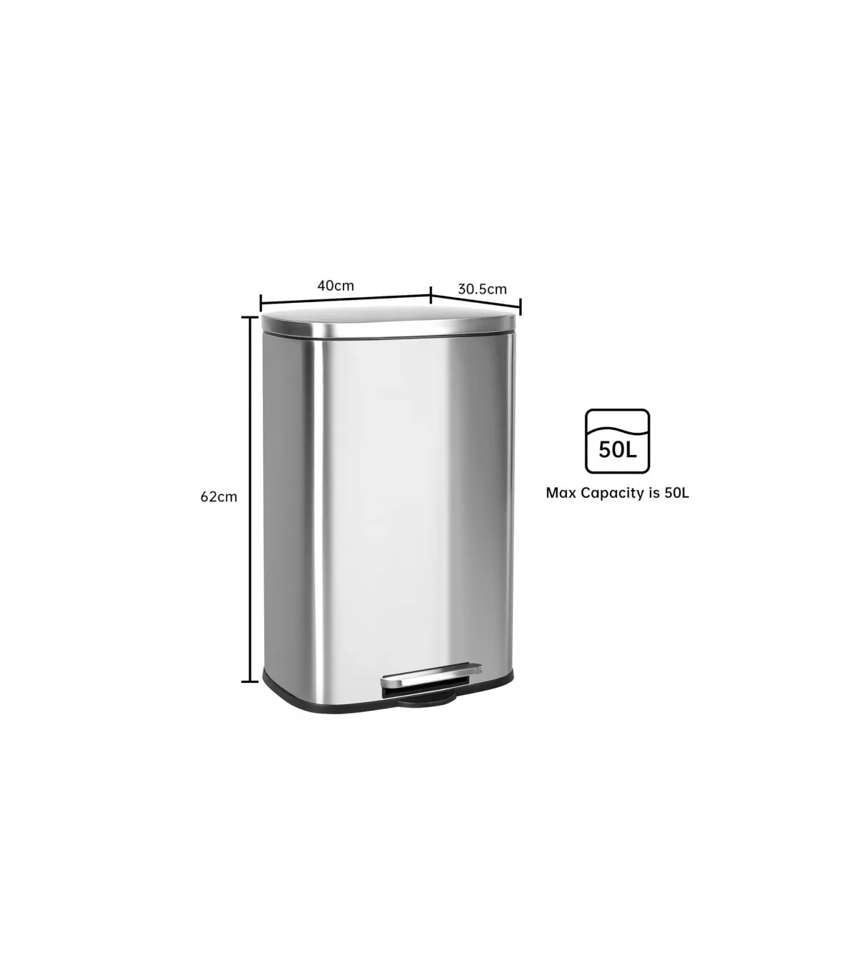 Tamaño del cubo exterior: 40 x 30,5 x 62 cm.