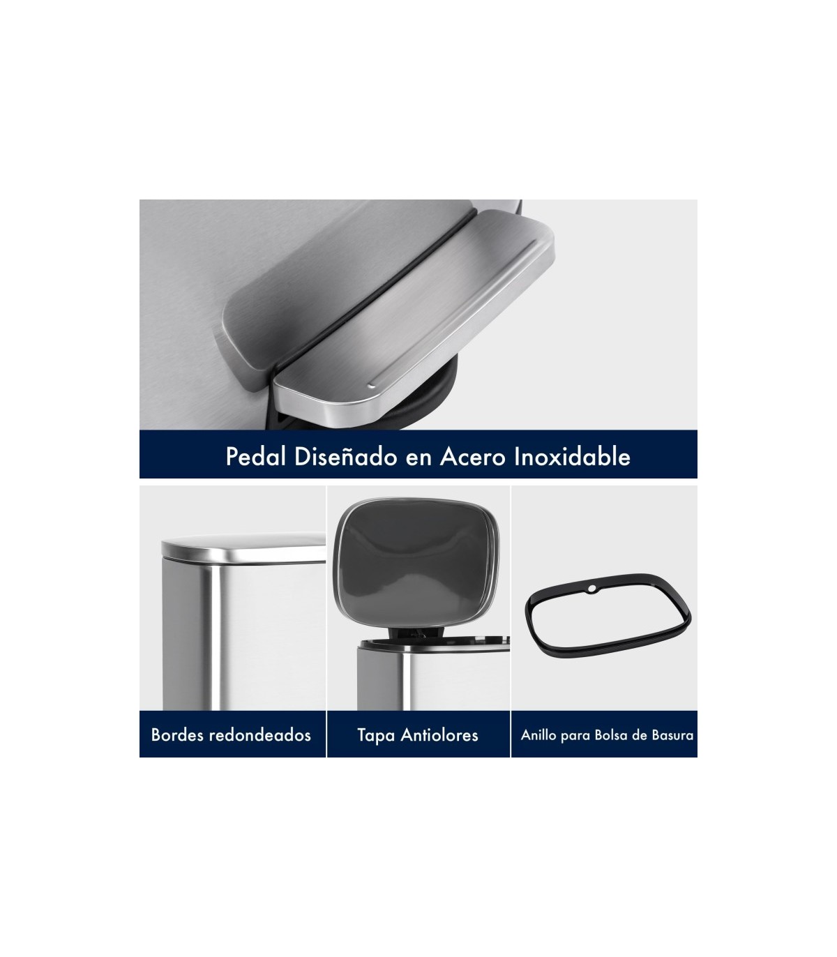 Tapa superior de acero inoxidable, a prueba de olores.