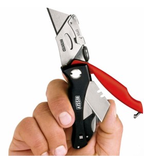 Cuchilla compacta profesional trabajos precisos BESSEY, plegable con recambios integrados.