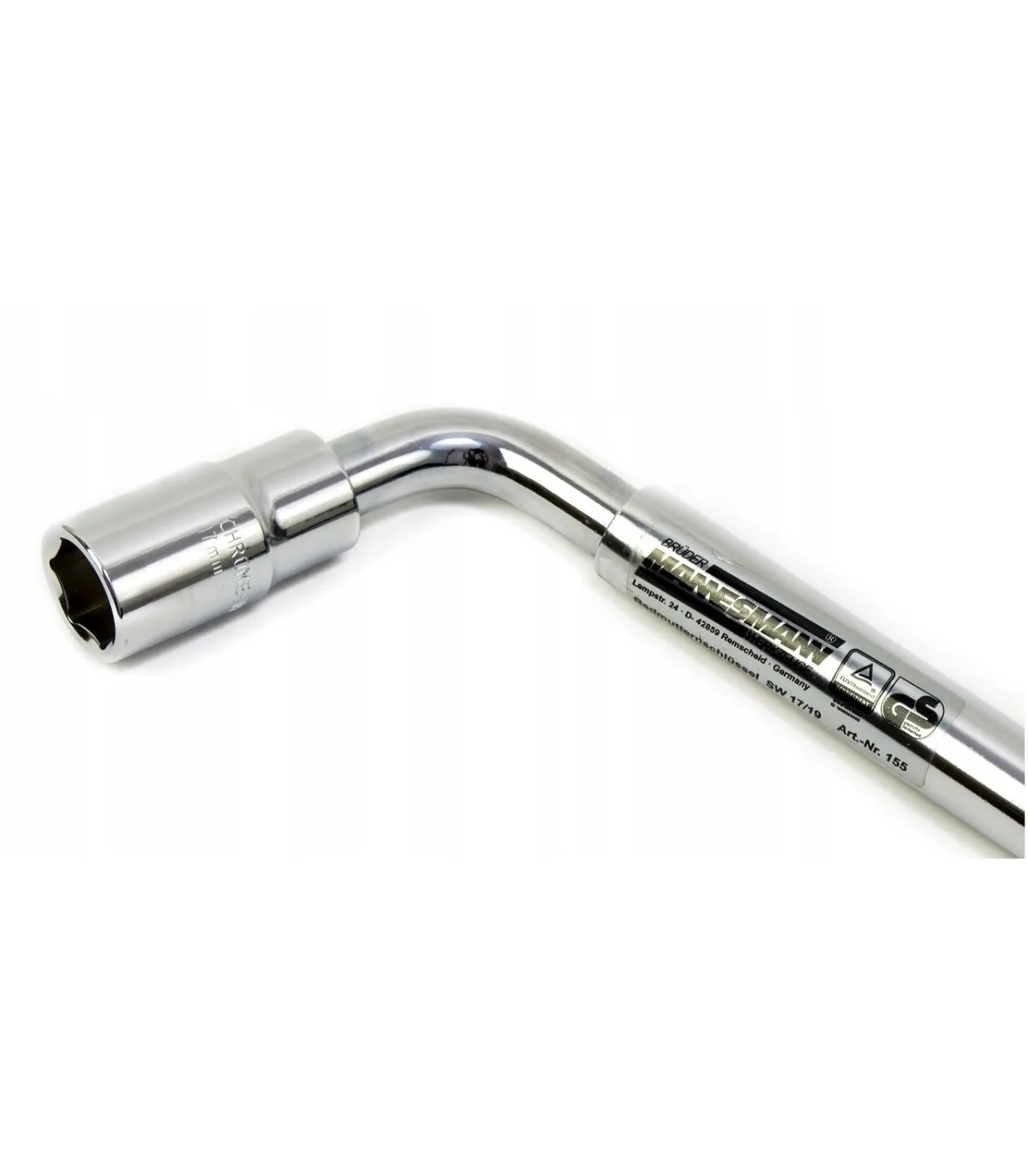 Llave acodada extensible con cuadradillo y vaso doble de 17 y 19mm para ruedas de vehículos.