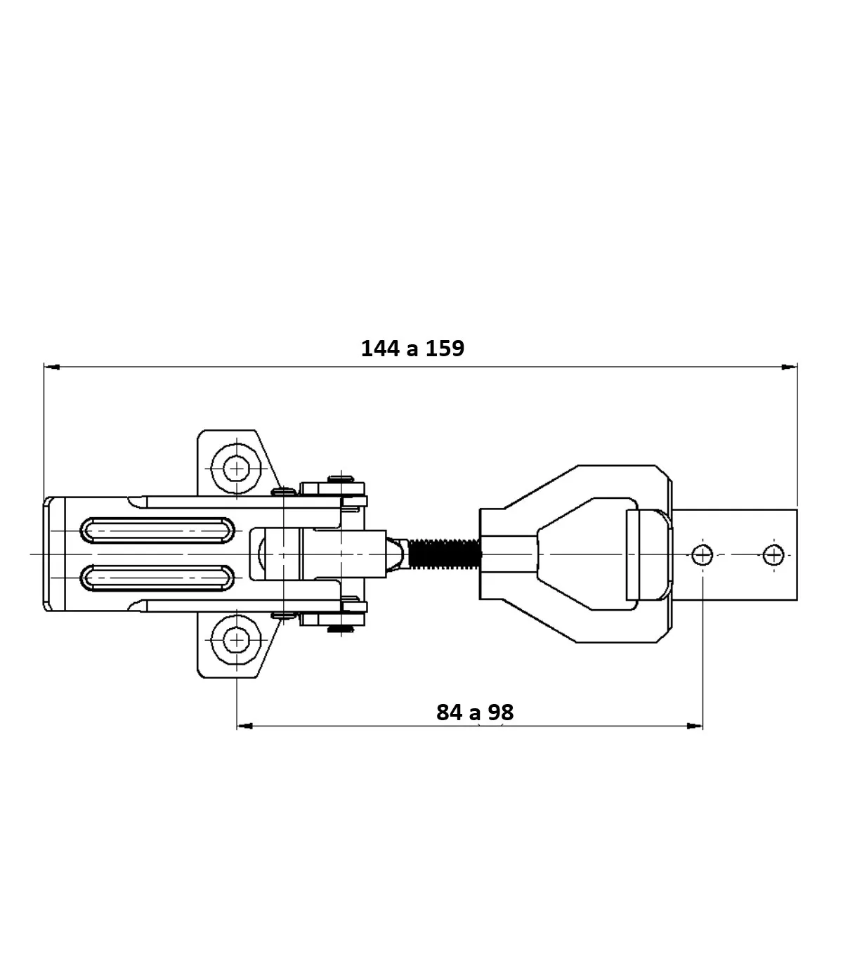 Se compone de 2 piezas: tensor a palanca con anilla regulable y gancho receptor. Ambas partes preparadas para tornillado.