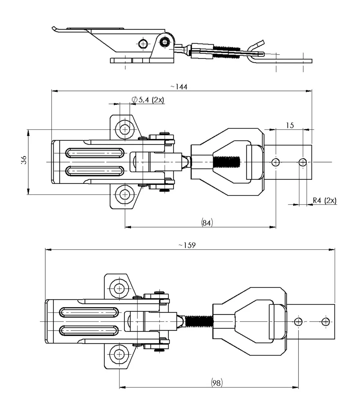 Tensor para cierre, en cajas o tapas, con anilla de cierre regulable para óptimo ajuste y/o tensión entre piezas.