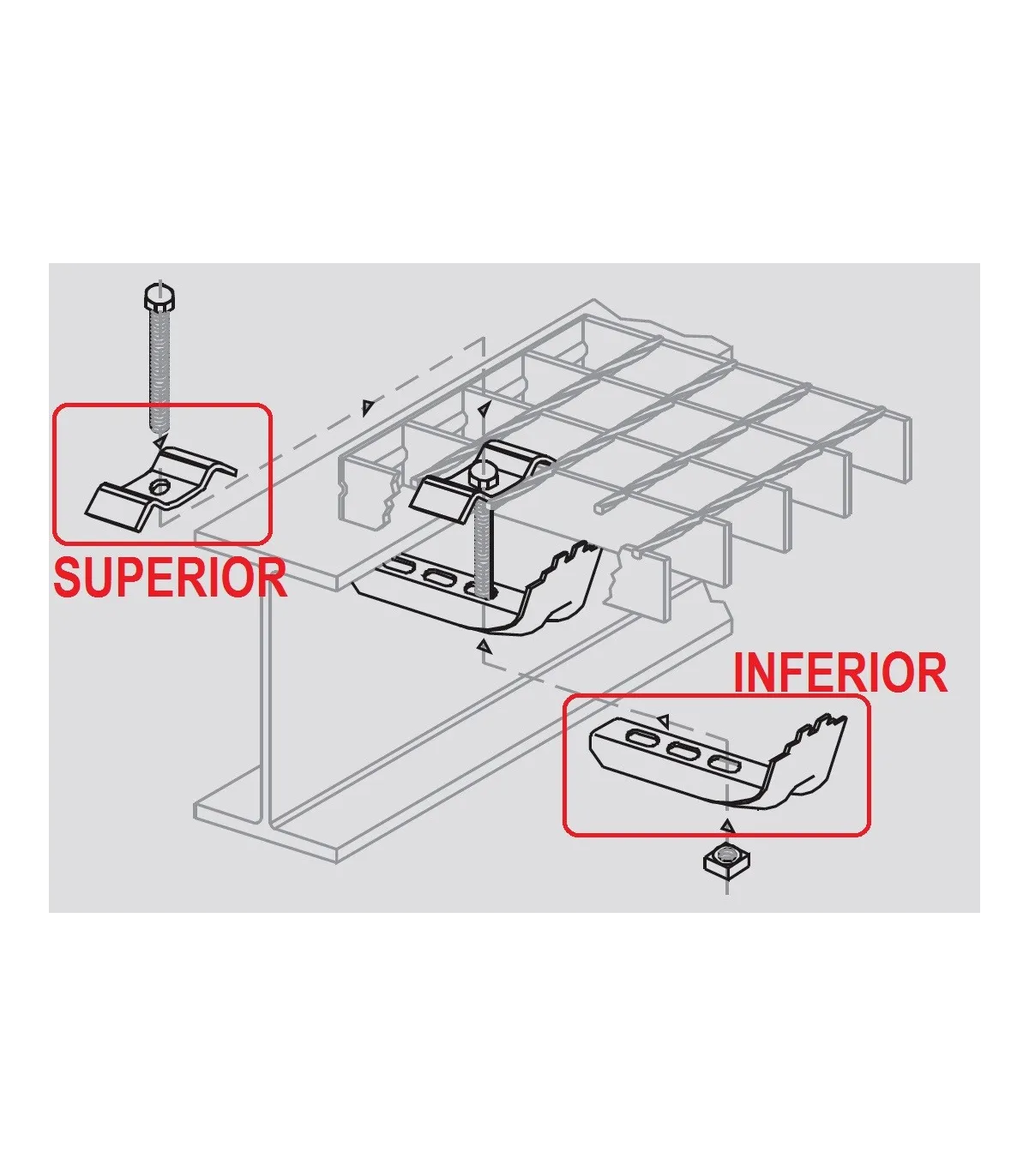 Pieza inferior suelta para sujección entramado a estructura.