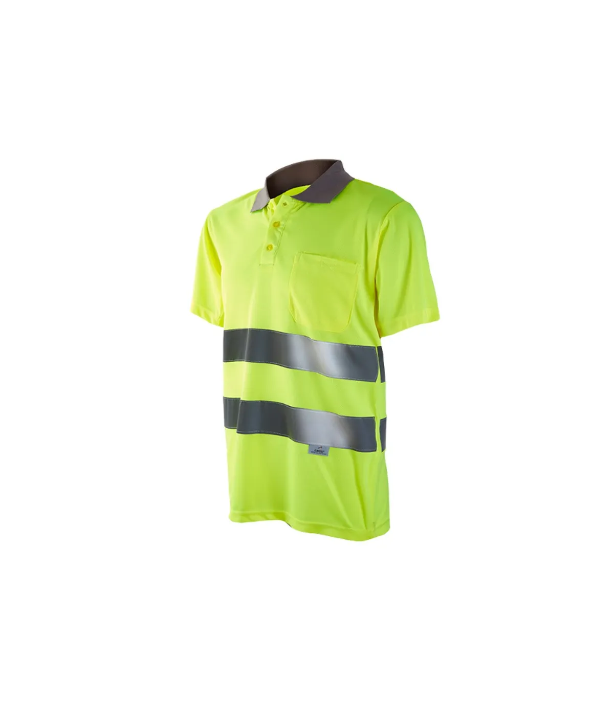 Polo de alta visibilidad AV 1201 con tejido transpirable, bandas reflectantes y bolsillo en el pecho.