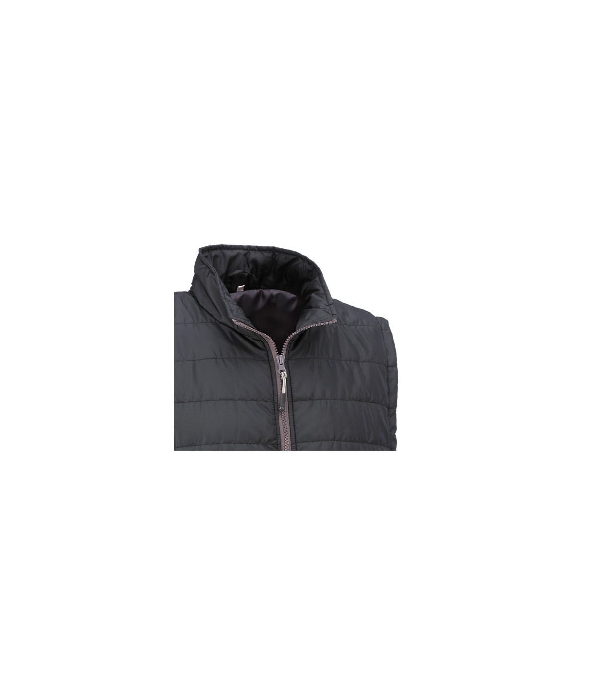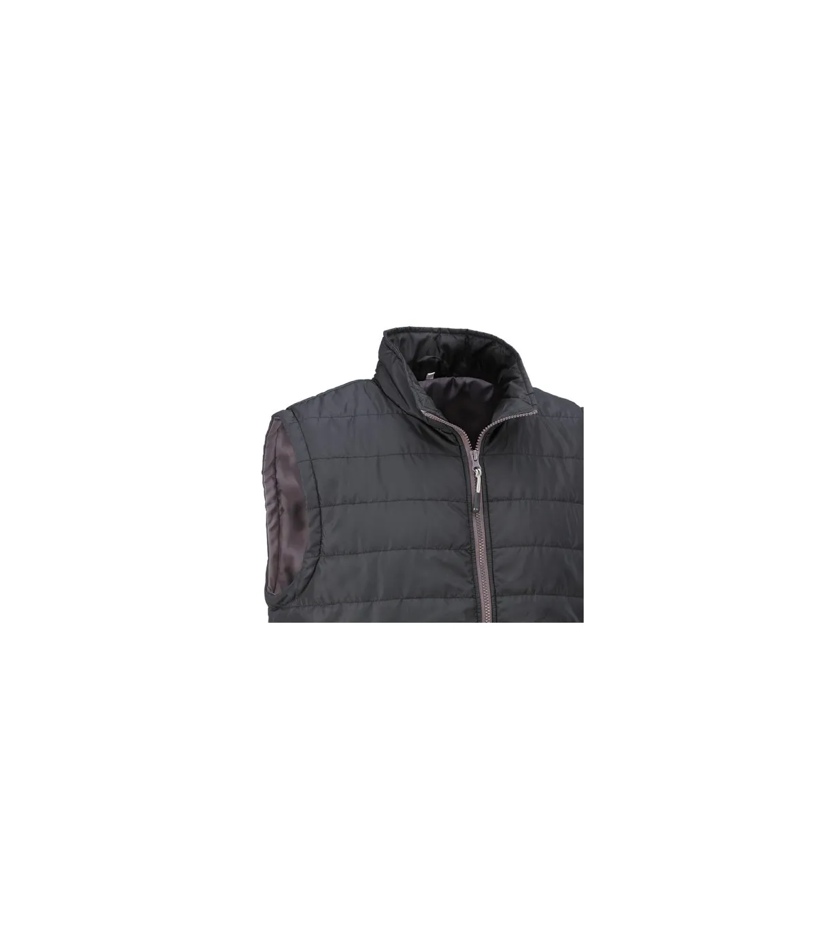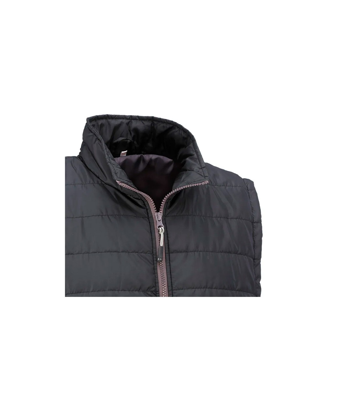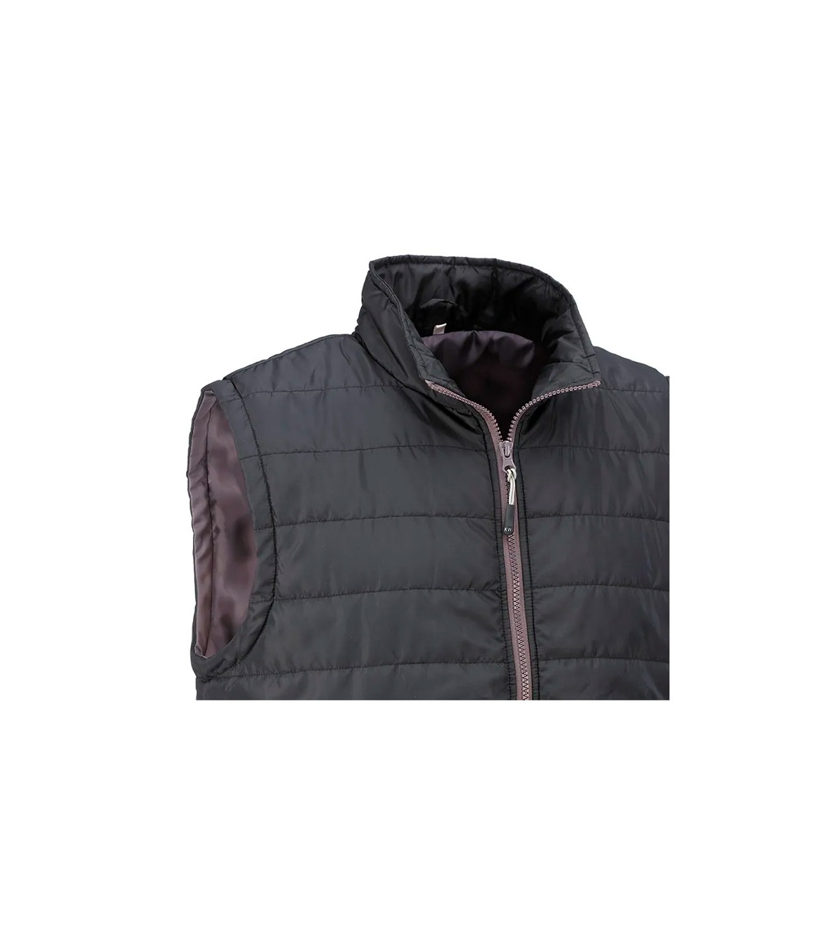 Chaleco acolchado con cierre frontal de cremallera. Dispone de dos bolsillos exteriores con cierre de cremallera.