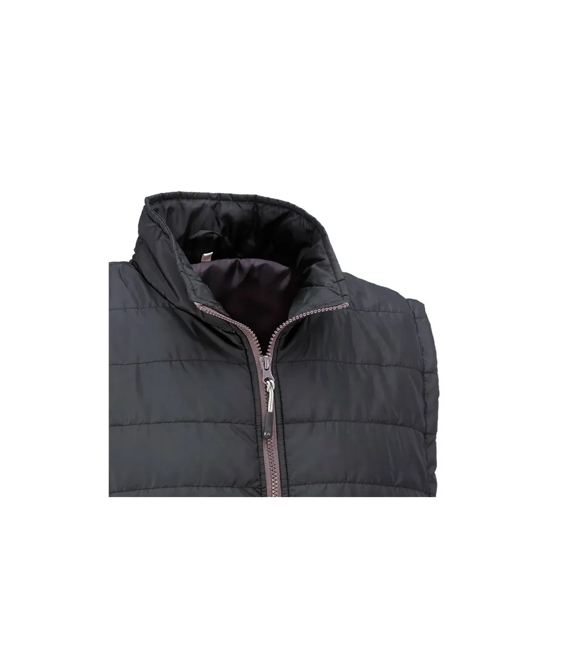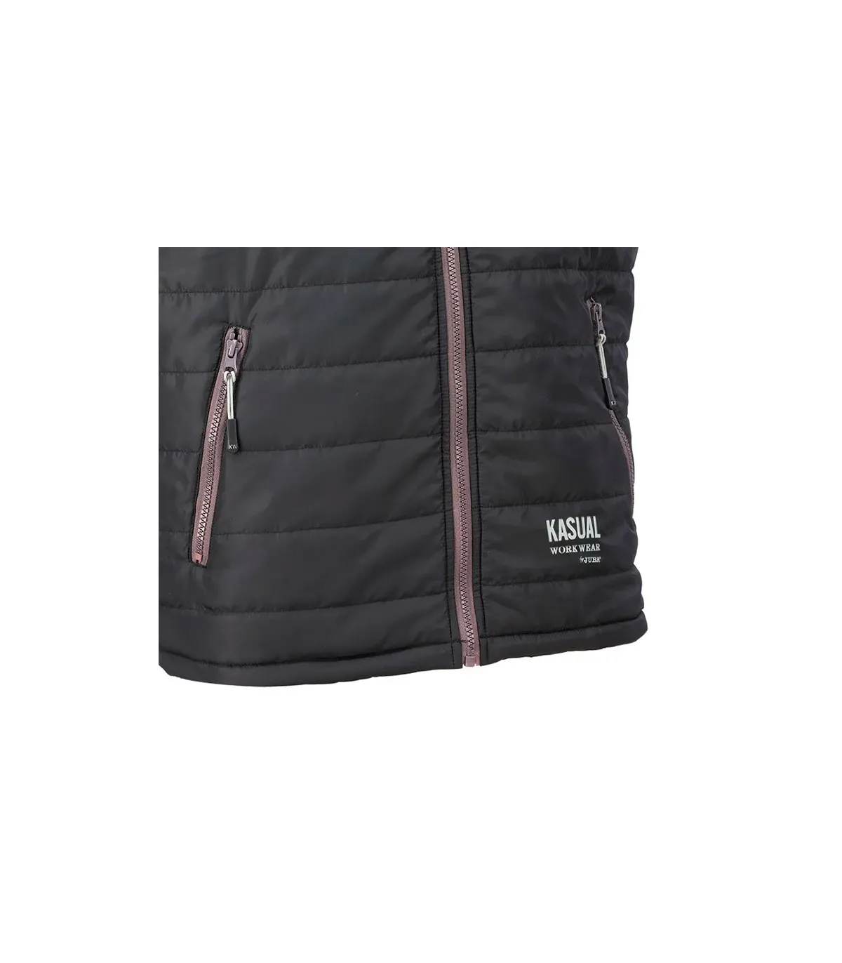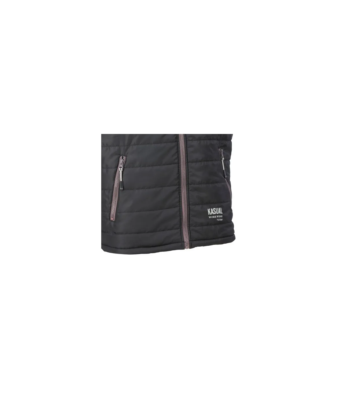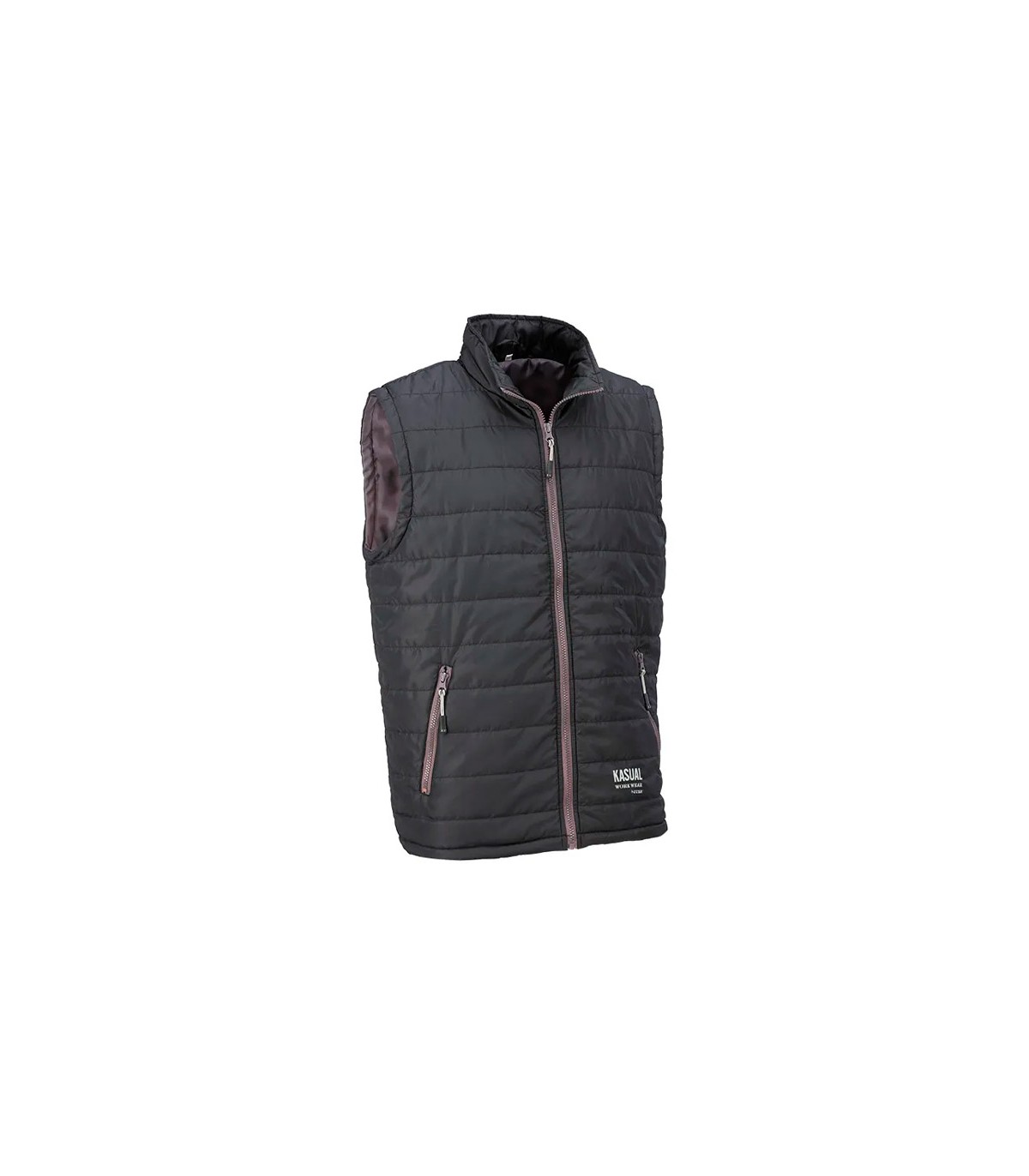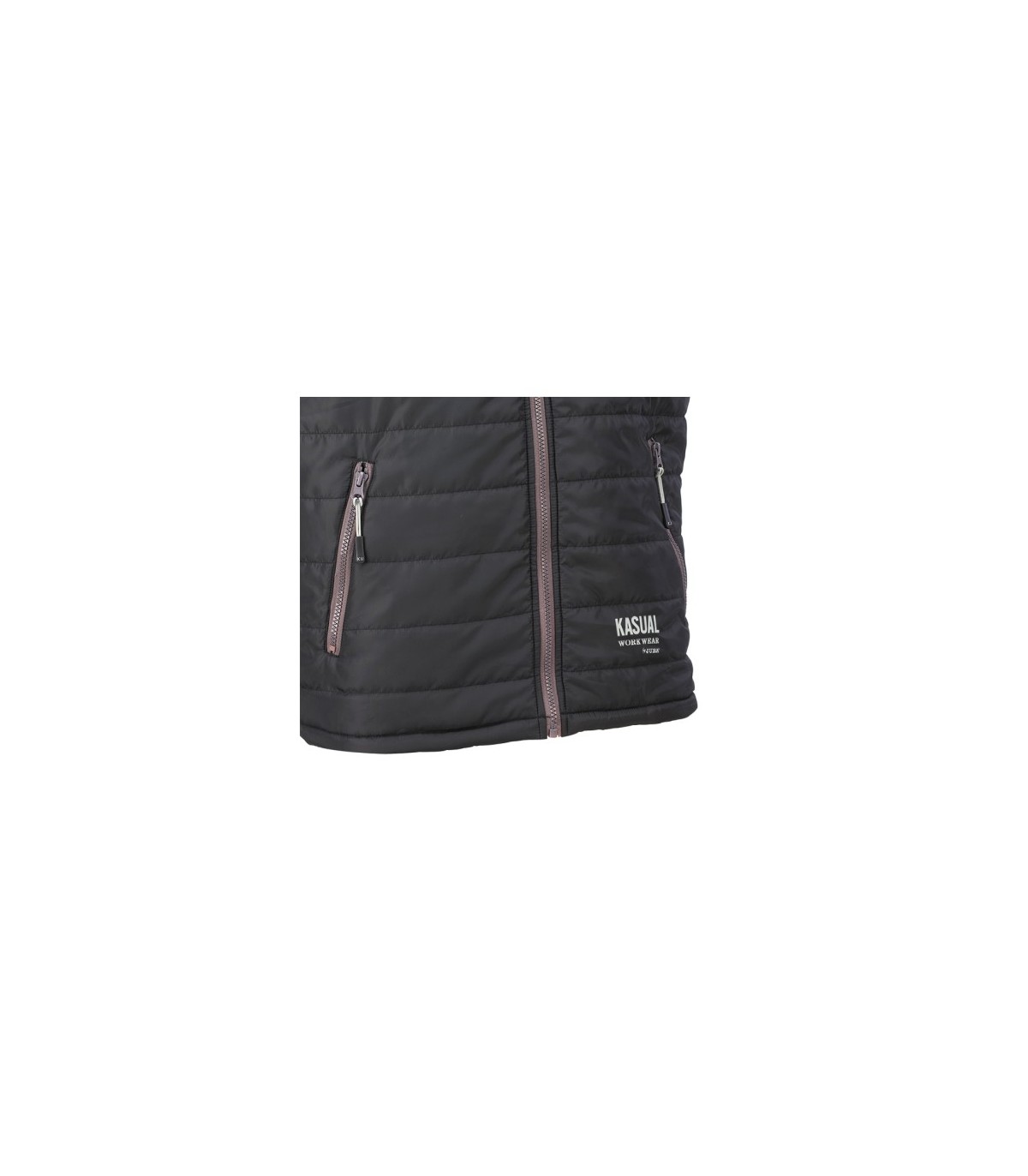 Chaleco acolchado con cierre frontal de cremallera. Dispone de dos bolsillos exteriores con cierre de cremallera.