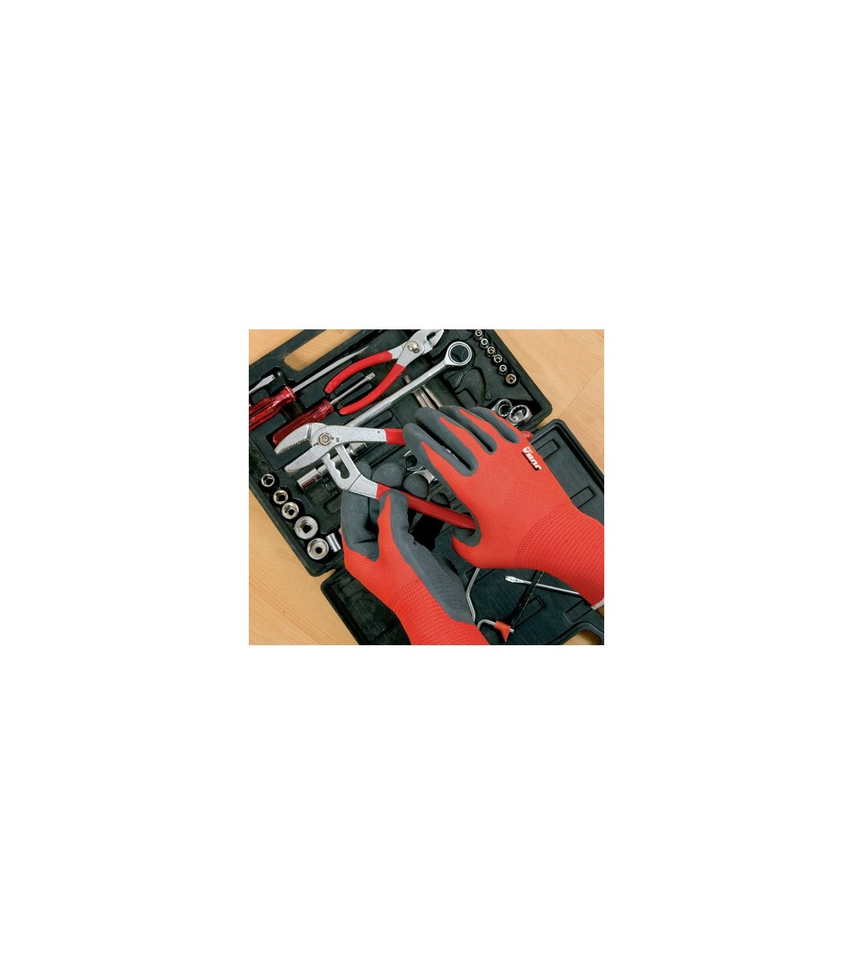 - Guante sin costuras de poliéster recubierto de látex rugoso.