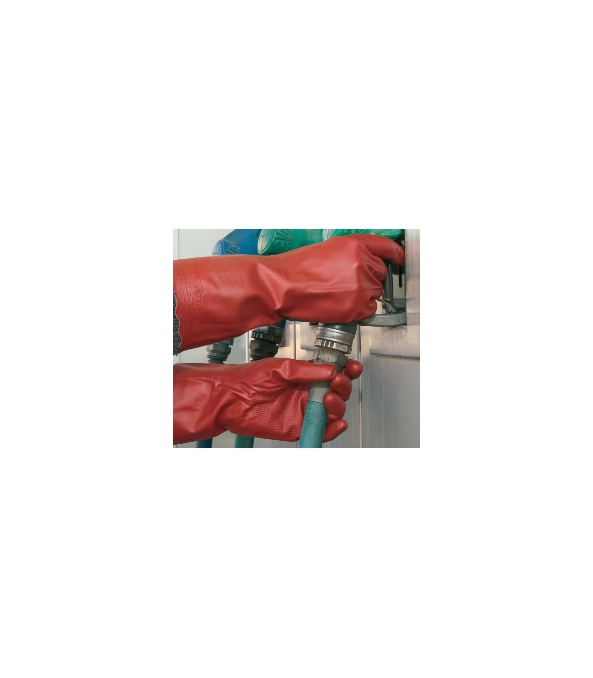 - Este guante protege contra las siguientes sustancias químicas: Hidróxido Sódico 40% (nivel 6, >480 minutos), Ácido sulfúrico 96% (nivel 5 >240 minutos), Ácido nítrico 65% (nivel 3, >60 minutos), Peróxido de hidrógeno 30% (nivel 6, >480 minutos) y Formaldehído 37% (nivel 2, >30 minutos).