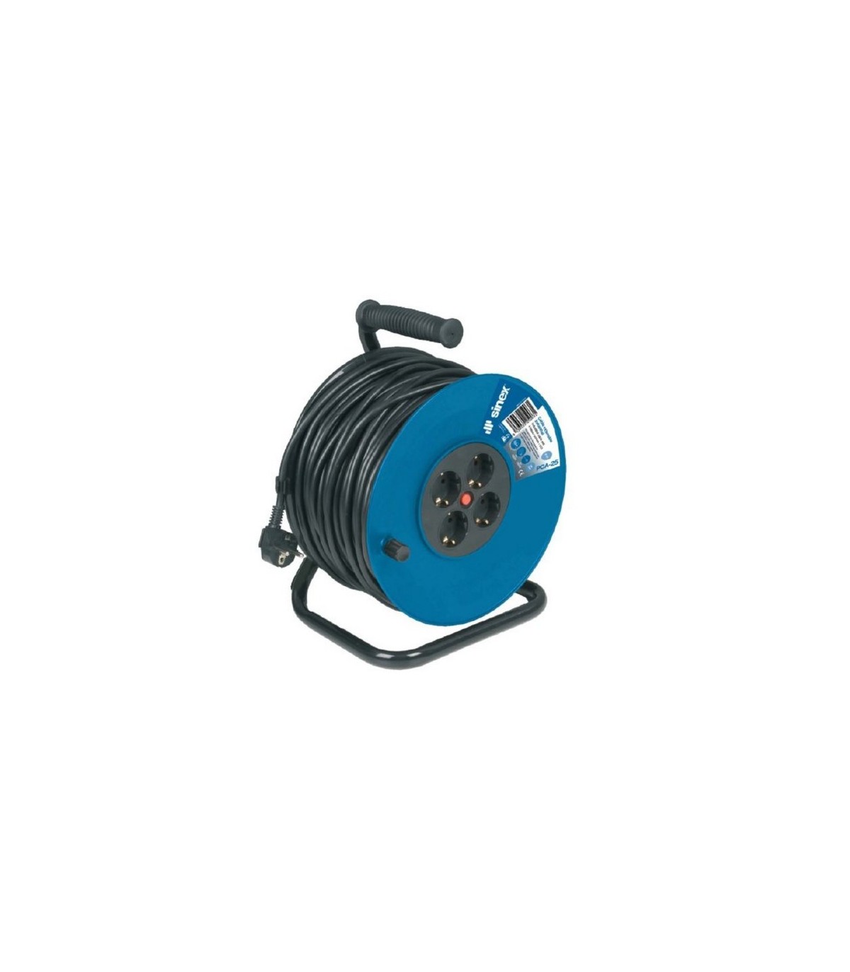 Cable 3 G 1.50. 4 bases sin tapa. Máximo 3.000 W desenrollado. 16 Amperios. Con termostato de seguridad. Grado protección IP20