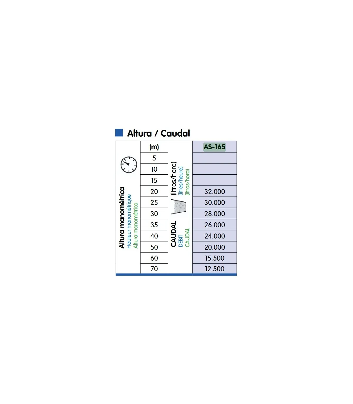 Motobomba ligera Campeon AS165, motor 2T 7CV. Caudal máximo  32m3/h y alta presión/altura de 7 bares/ 70 metros
