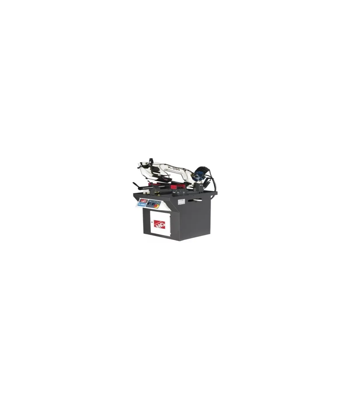 Sierra de cinta MG industrial modelo K280/M/BH, manual, capacidades Ø200 y 280x180mm. Con giro 45/60 grados