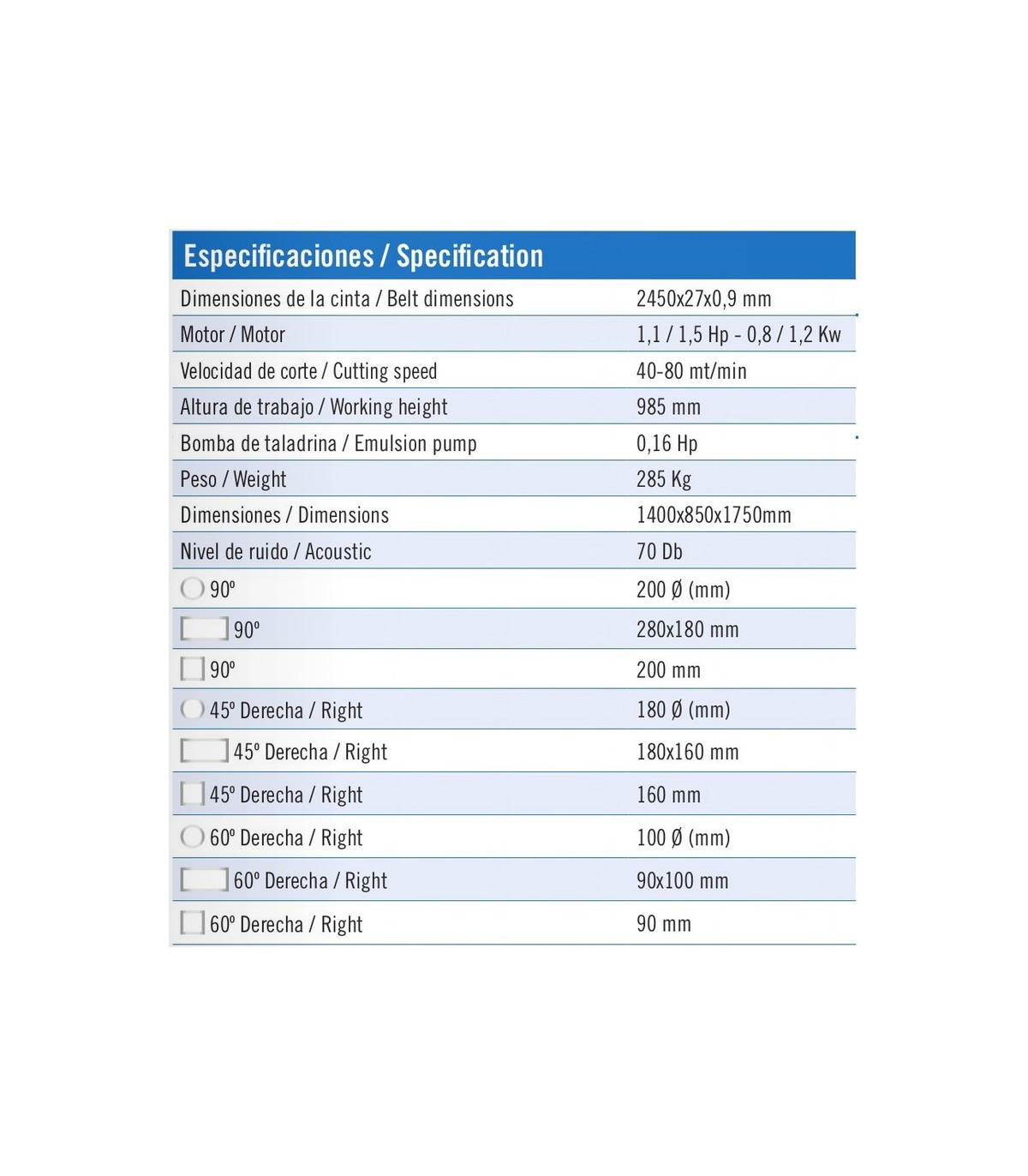 Capacidad de corte cuadrado       60º   derecha  90X90 mm