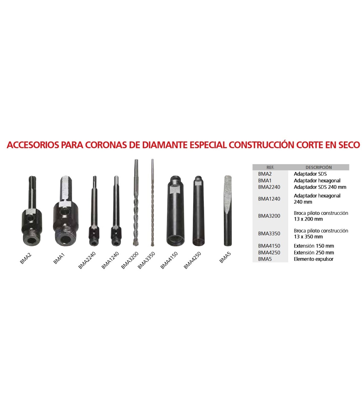 Corona larga diamante para perforaciones profundas. Corte en seco