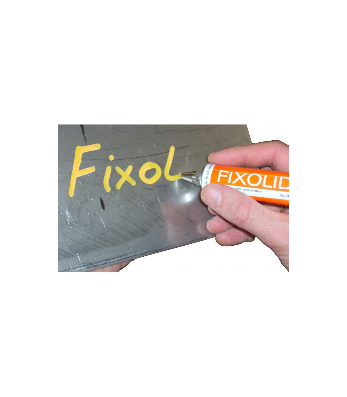 Realiza marcas permanentes, que secan en 5 minutos y son resistentes a la intemperie o a la manipulación con taladrina, aceite, ácidos, etc.