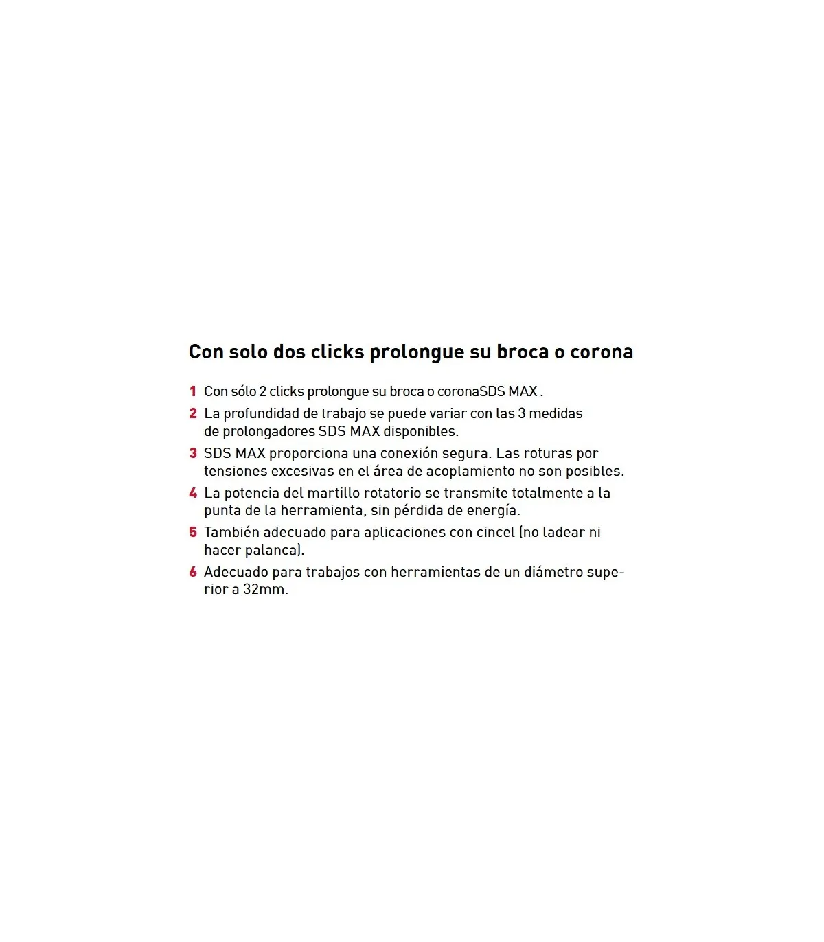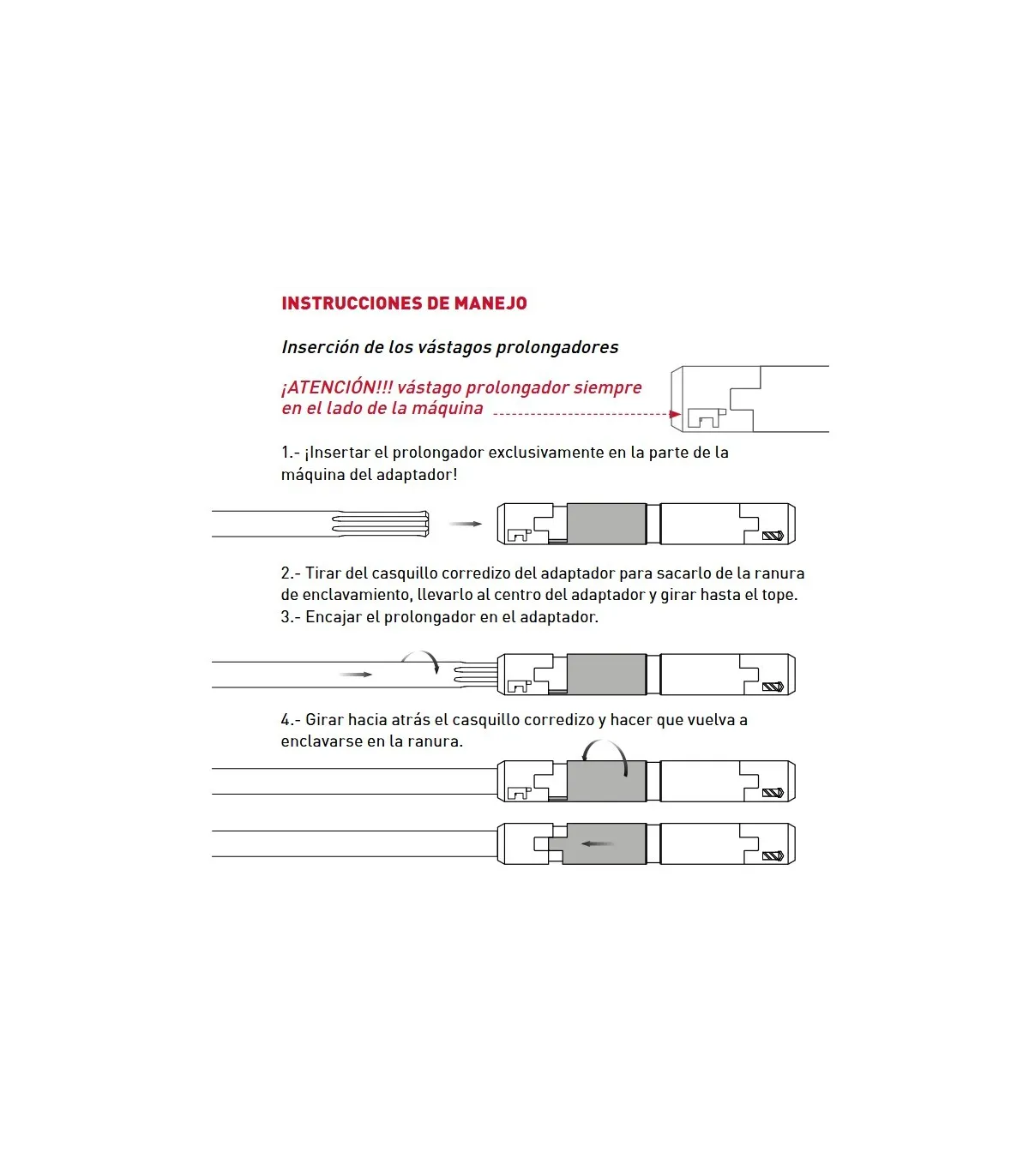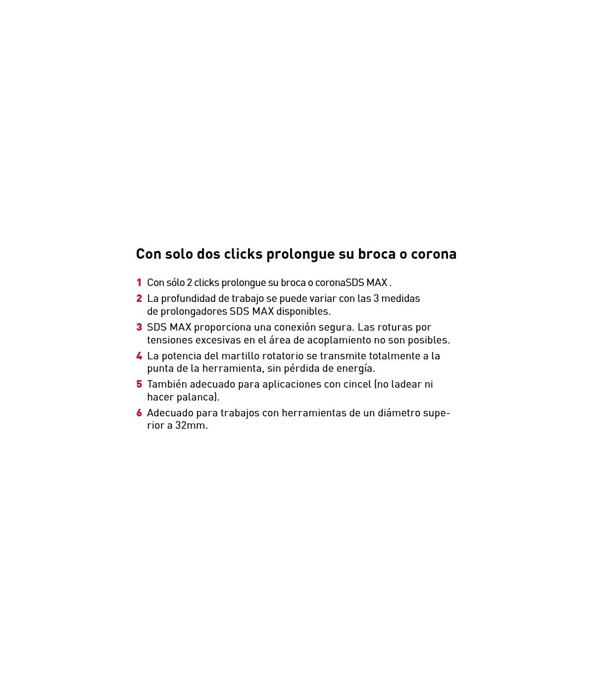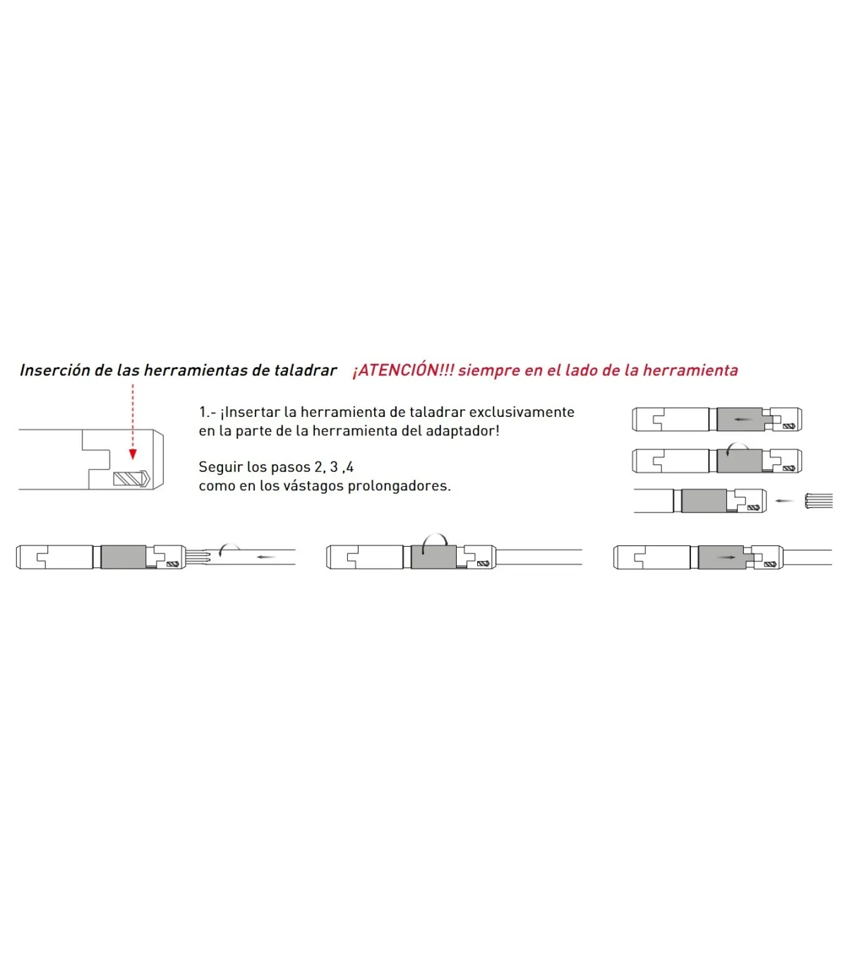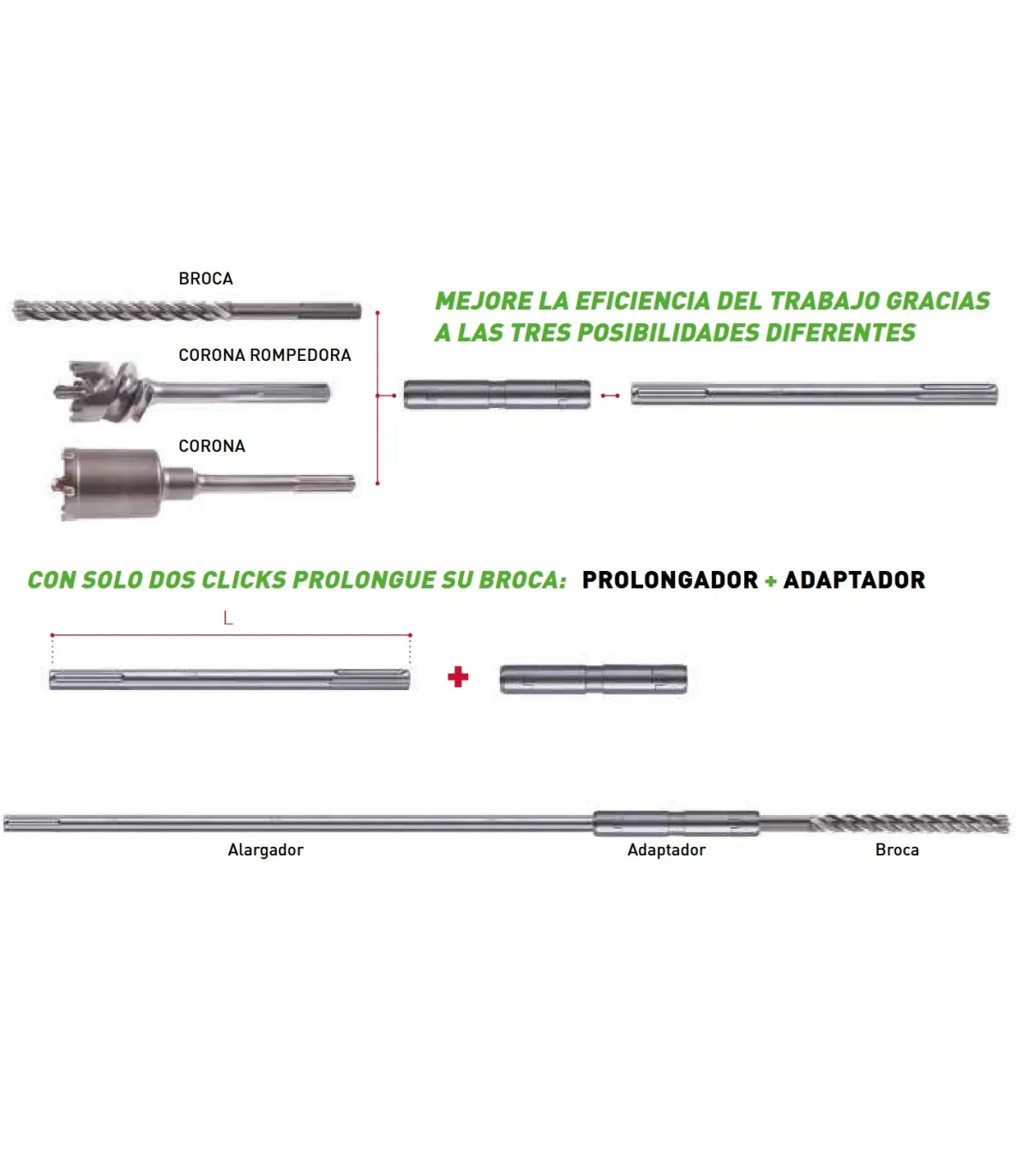 Existe adaprtador para SDS-Plus a esta extensión, así como diferentes barras/ varillas alargaderas SDS-Max/Plus