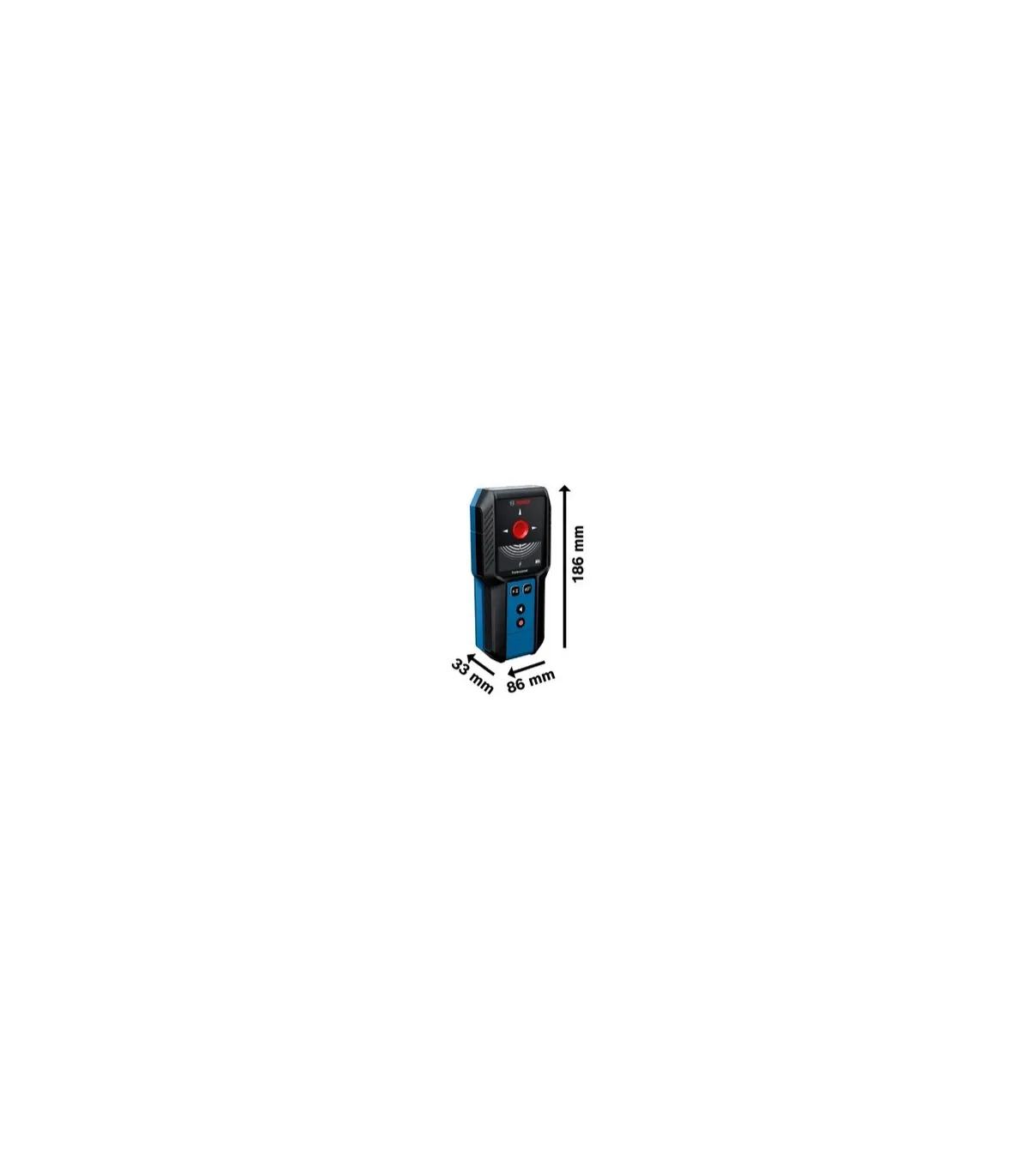Detector GMS 120-27, Al perforar una pared, quieres tener la seguridad de no encontrarte con ningún obstáculo. Nuestro detector de pared GMS120-27 Professional detecta objetos de forma fácil e intuitiva. Los resultados de la detección se muestran mediante una señal en la pantalla y un orificio de marcaje con código de colores. Se trata de un detector fácil de usar con una selección de modos sencilla que te permite marcar de forma exacta el punto en el que se haya detectado algún objeto. El GMS 120-27 es muy resistente: está pensado para lugares de trabajo exigentes, ofrece protección de nivel IP54 contra el polvo y las salpicaduras de agua, y cuenta con una carcasa de goma que absorbe los golpes. Nuestro detector de pared GMS 120-27 Professional te ayudará a detectar y ubicar metales, cables con corriente y tacos de madera en placas de yeso. Ubicar posibles obstáculos en una pared antes de perforarla permite trabajar de manera más segura. Esto es especialmente importante en aquellas profesiones dedicadas a las reformas al instalar armarios, encimeras, lavabos, calderas, calefacciones, aires acondicionados o sistemas de aspersión. Este detector no solo identifica el centro del objeto detectado, sino que también indica las características del material; por ejemplo, si el objeto es magnético o no,si es un cable con corriente o si no es metálico. Estuche semirrígido; 2 pilas de 1,5 V LR6 (AA)