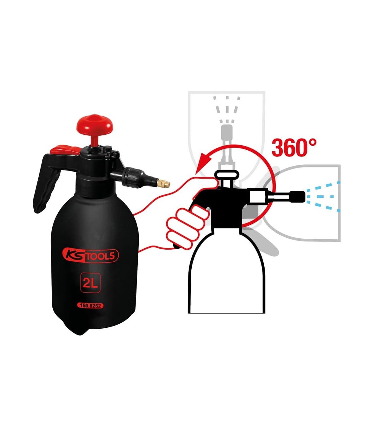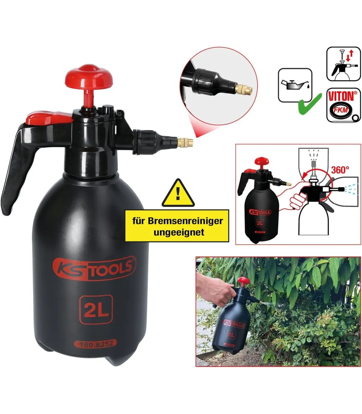 Pulverizador presurizado KS TOOLS para disolventes, alcoholes, detergentes. NO es apto para desengrasantes ni limpiafrenos