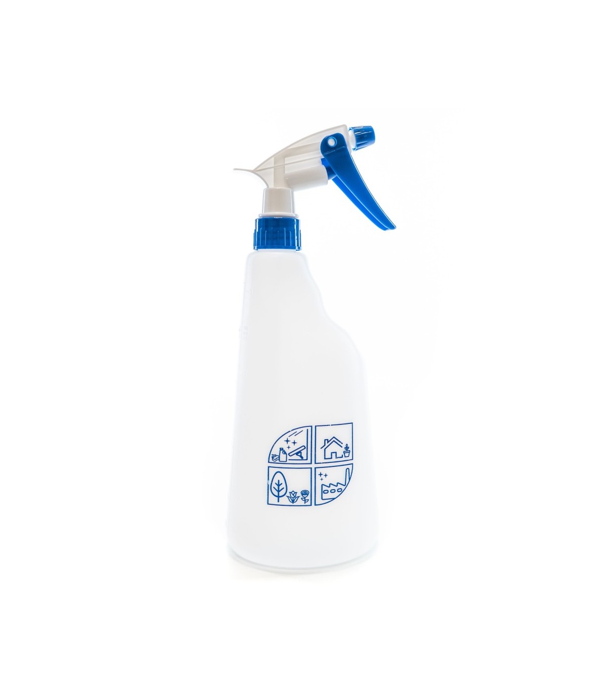 Pulverizador tipo doméstico, depósito HDPE translúcido, boquilla salida ajustable y con cierre.