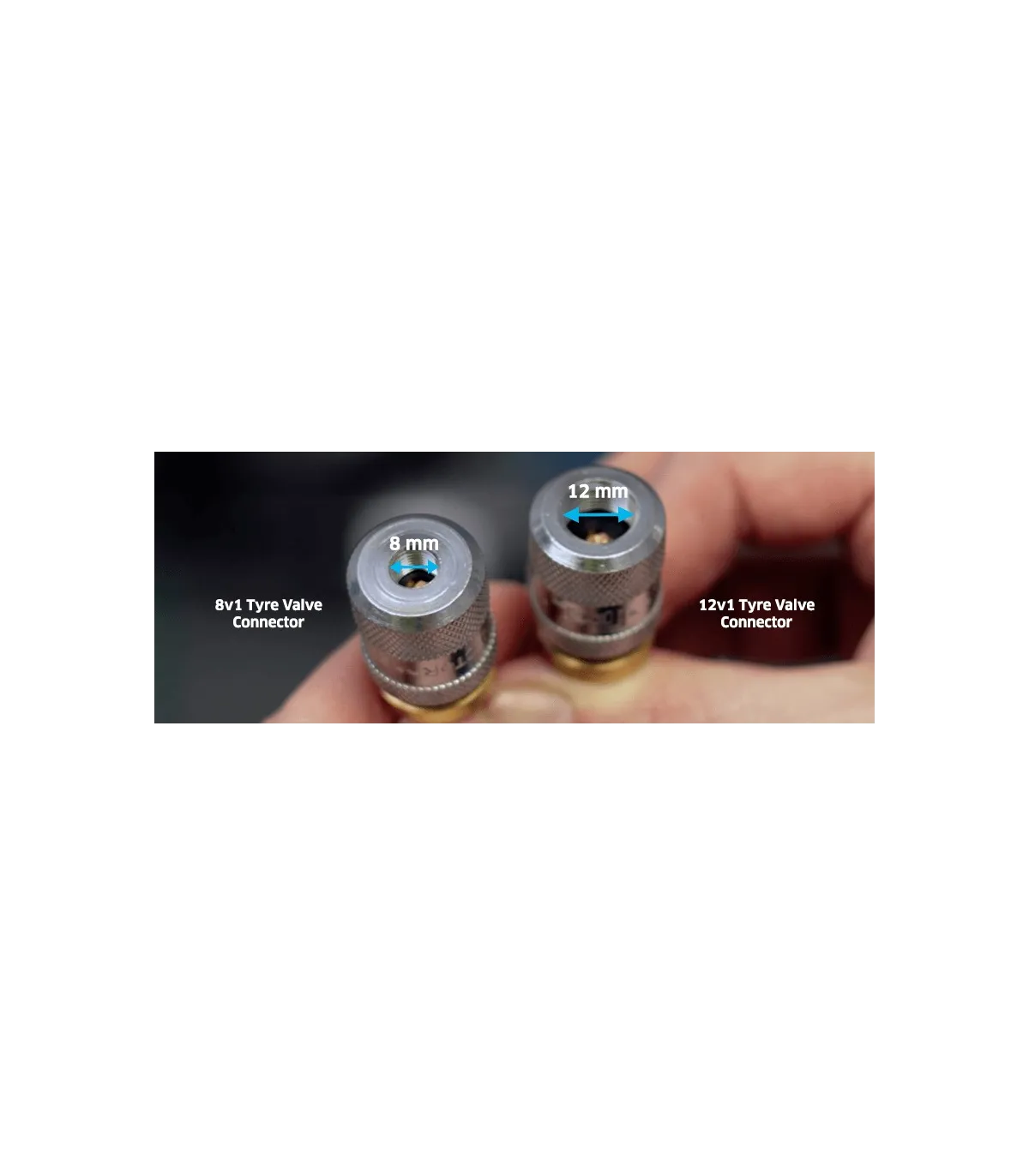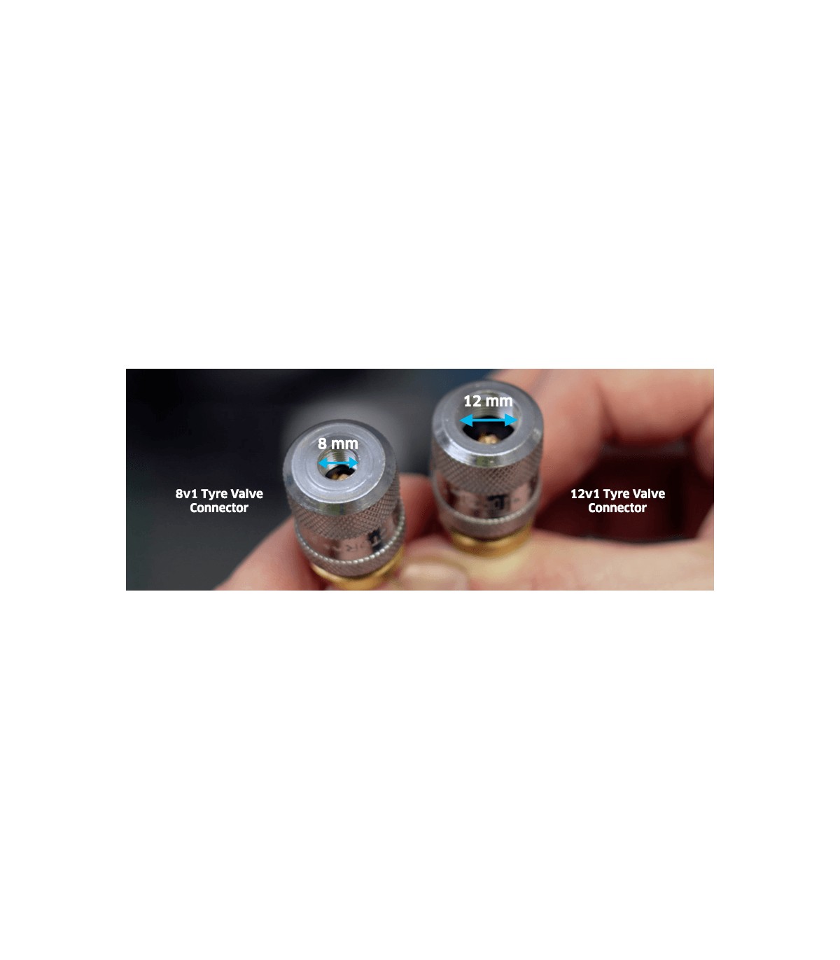 Conector aire a vávulas muy gruesas 12V1 de ruedas de maquinaria de obra publica o mineria, con cierre de seguridad.